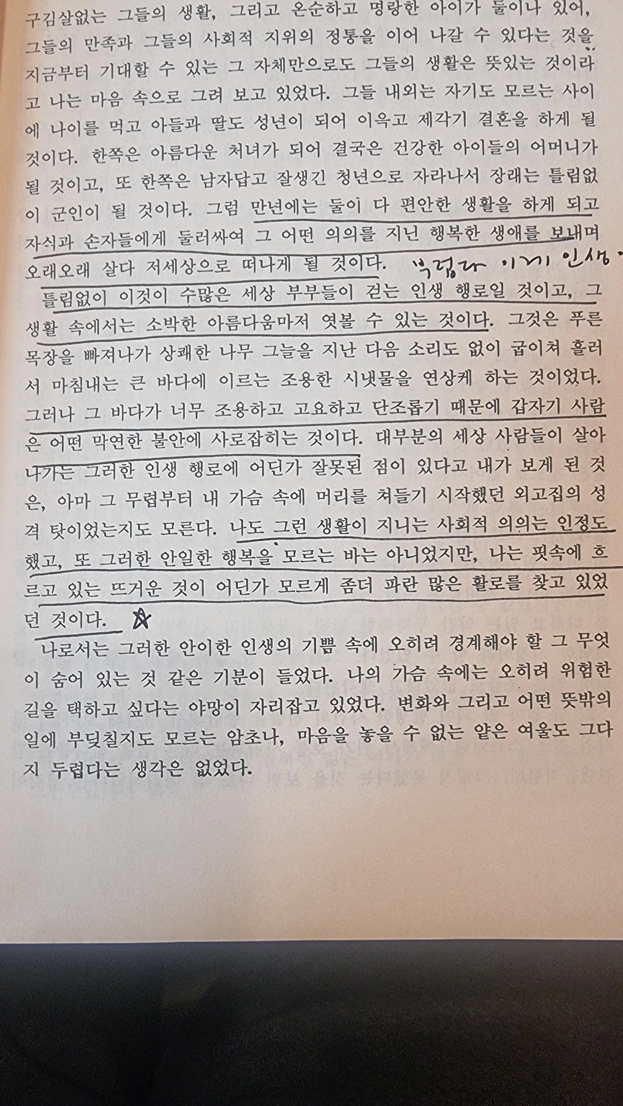 심리학 용어로 낙인 효과라고 한다지. 거리의 차들을 봐도 유난히 관심있는 차종만 눈에 들어오는거. 그러니 읽으며 밑줄치는 행위는 오늘의 내 맘 상태를 표현하는 너무나 쉽고 간단하며 정확한 일기다.