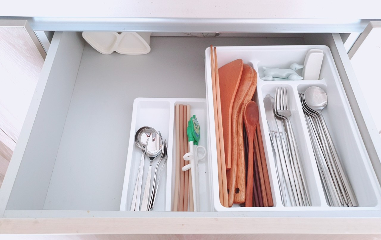 우리 집 서랍장, 수납장은 언제나 빈 공간을 유지한다. 꽉 채우지 않는다. 수납장과 서랍장은 채워야 한다는 편견을 버린다. 꽉 채운 수납장보다 헐렁헐렁 빈 공간이 있는 수납장은 보기가 좋으며, 물건을 꺼내기도 보관하기도 편리하다.
