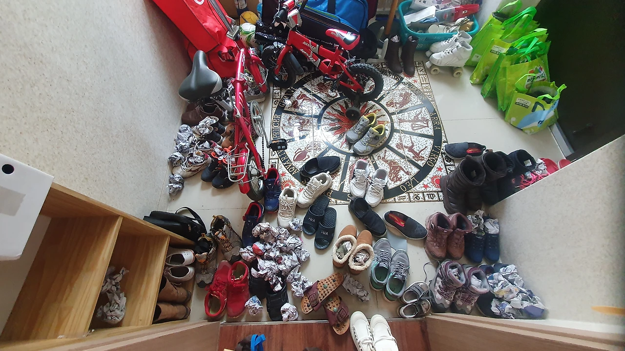 우리 집 현관은 들어서면 마치 명절날 대가족이 방문한 현관을 연상하게 한다. (그만큼 신발이 많이 꺼내어 있다.)