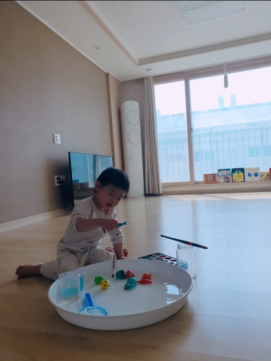 2020년 3월 거실은 미술놀이,물놀이,붕붕카타는 공간
