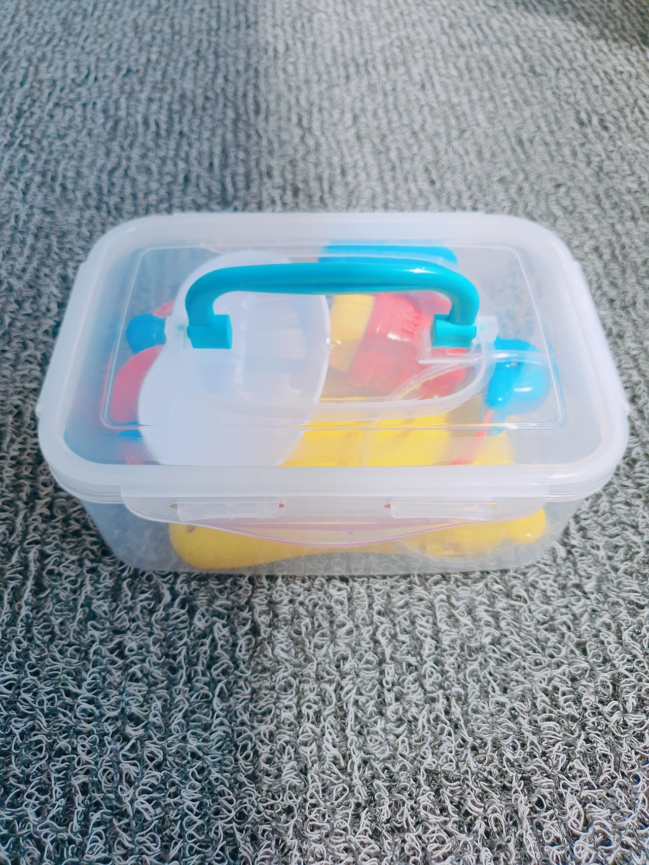 손잡이가 달린 반찬통은 잃어버리기 쉬운 아이의 작은 장난감들을 보관하면 편리합니다.