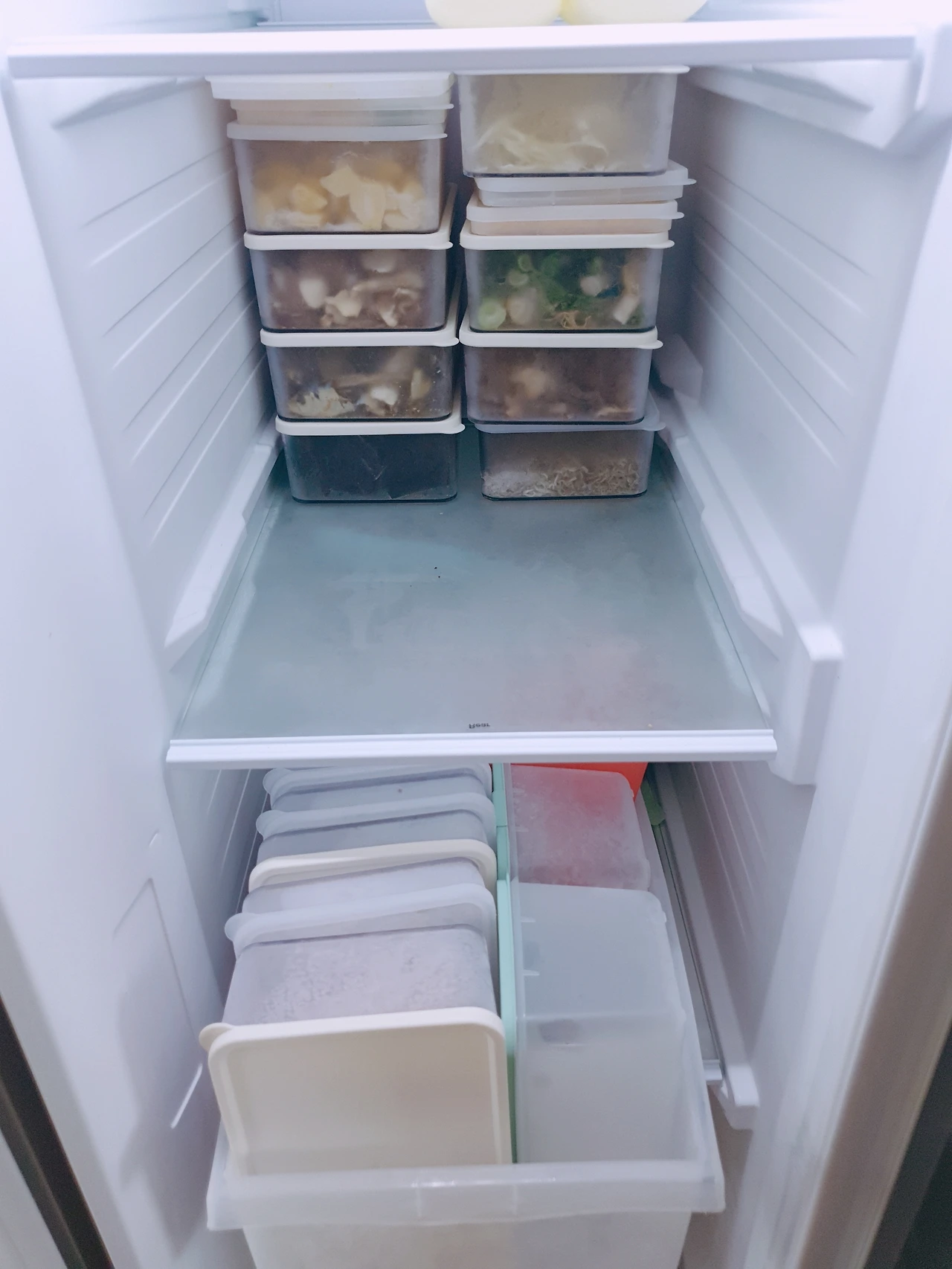 냉동 나물, 채소, 고기 등 투명한 용기라 내용물도 보이고 유리보다 가볍고 깨질 위험도 적습니다.
