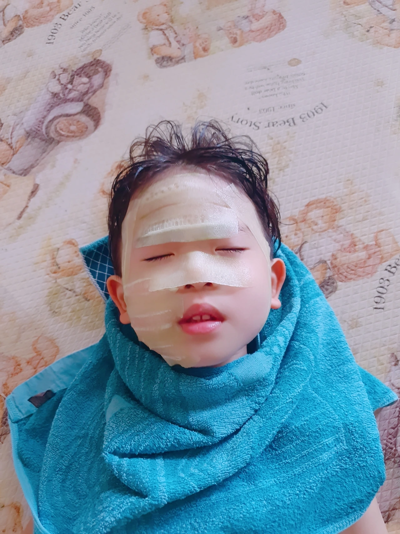 "승현아, 오이마사지 하자~할미가 오이 붙여줄게 누워봐~"