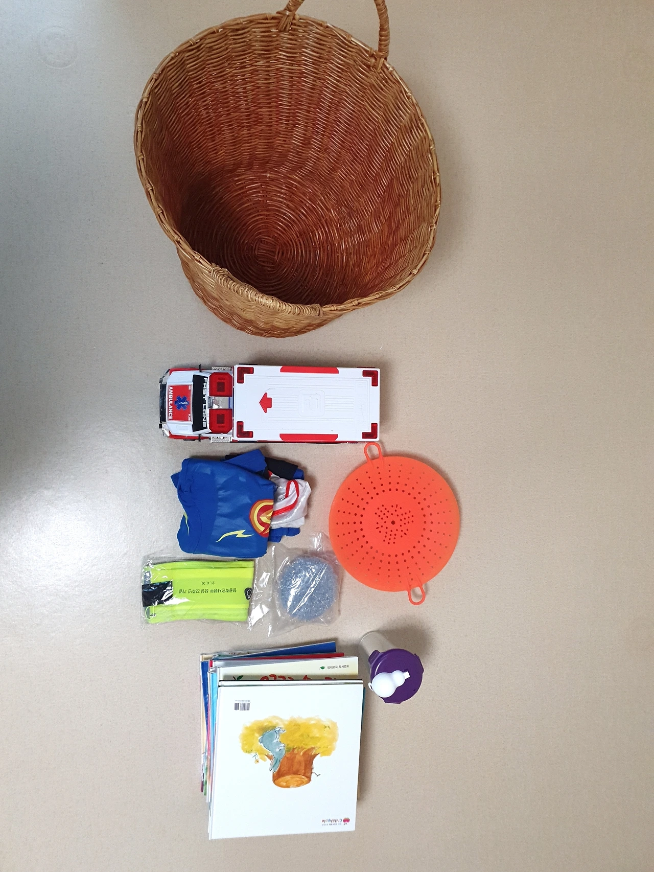 첫 번째, 바구니 안의 물건들 사진을 찍는다.