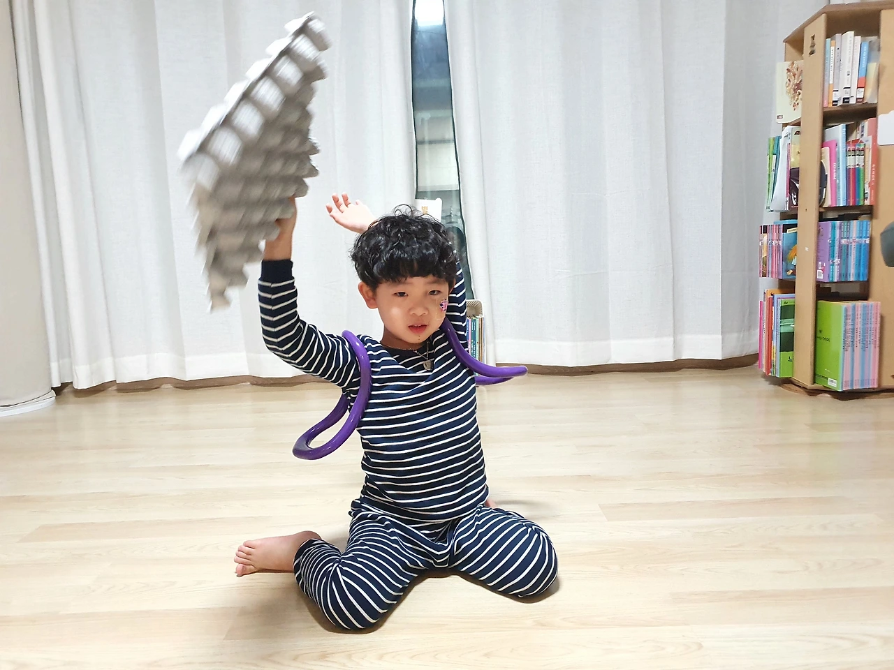 우리 집은 10구짜리 계란을 사 먹기 때문에 30구짜리 계란판은 아이에게 희귀 템이다. 어느 날은 30구짜리 계란판을 들고 놀이터에 나갔는데, 친구와 함께 방패라며 놀다가 그만 계란판이 찢어졌다. 그래서 그날 집에 들어오면서 엄청 울었다. 다음 날 계란판을 구하러 쓰레기장을 돈 적도 있다. 4살 아이에게 5살이 된 지금도 계란판은 참 소중한 놀잇감이다.
