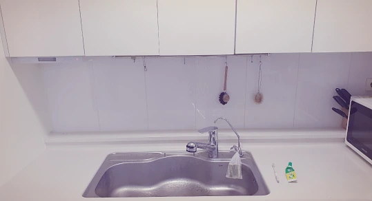 물건이 적으니 가장 쌓아놓기 쉬운 주방 청소도 쉽게 한다.