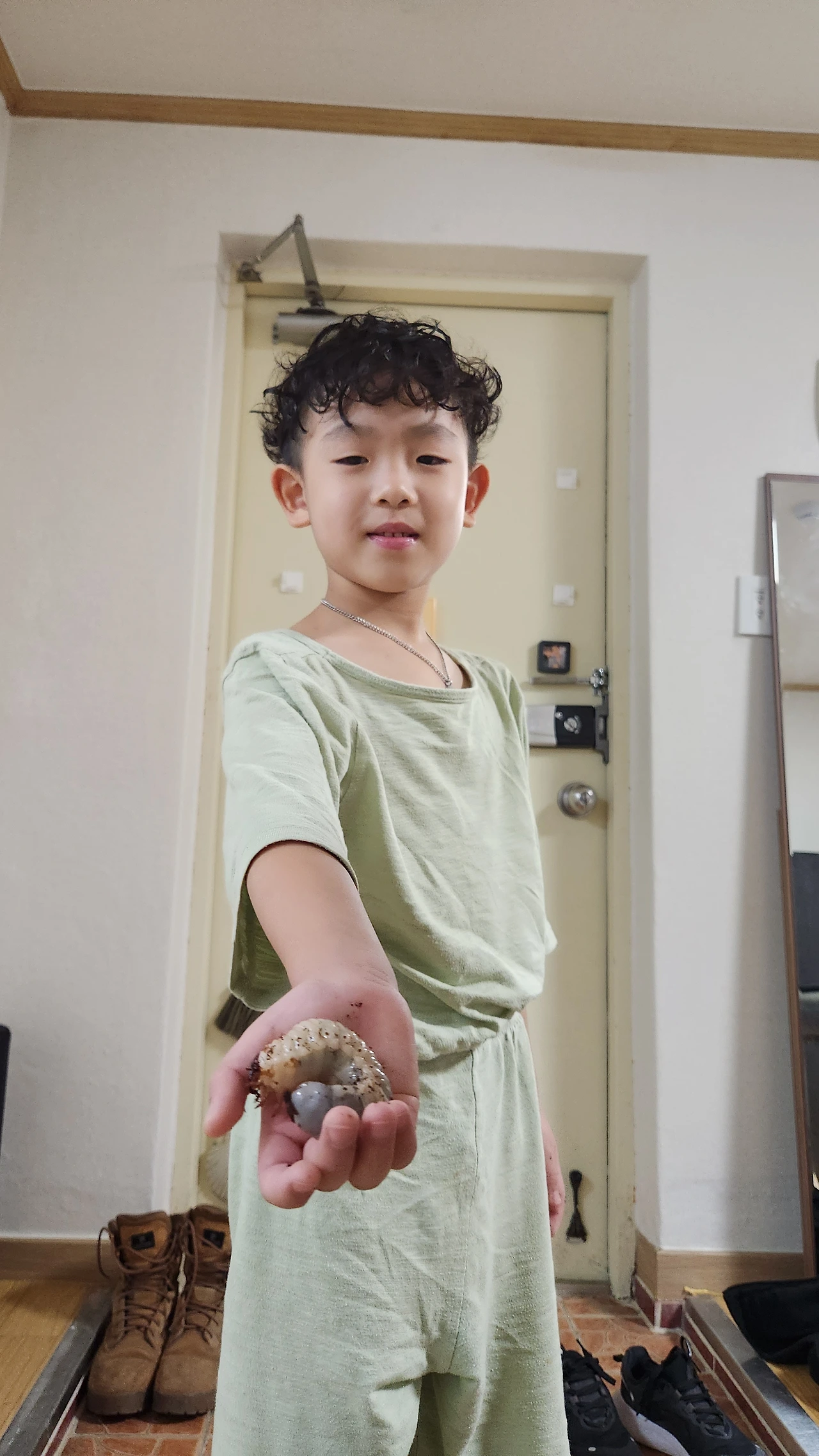 반면 제 마음은 아이가 소중한 것을 선물해 줘서 고맙지만 사실 너무 징그럽습니다. 작은 건 귀엽 기라도 하지, 손바닥만 한 애벌레는 조금 무섭기까지 합니다. 하지만 아이의 마음에 상처를 줄 수 없기에 일단 고맙다고 잘 받아놓았습니다.