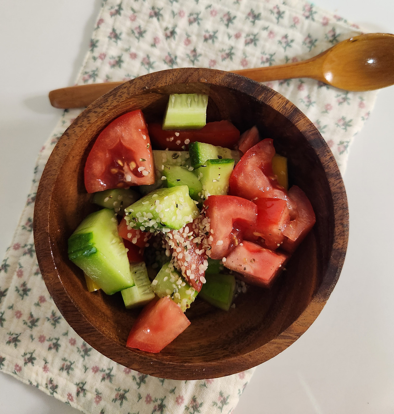 여름을 좋아합니다. 그 이유는 단순합니다. 여름에 나오는 채소가 굉장히 다양하고 맛있어서지요. 여름은 수박, 참외, 토마토, 오이, 복숭아, 가지, 호박 등 요리해먹을 수 있는 식재료가 가장 많은 계절이지요. 그런데 안타깝게도 너무 더운 날씨에 불 앞에 오래 서서 요리를 하려면 그 누구라도 힘이 듭니다. 그래서 여름에는 오래 삶고 찌는 요리보다 최소한의 불을 쓰고 불 없는 요리를 하는 날도 많아요. 너무 더우면 입맛도 없어지고 요리할 기분도 나지 않아요. 그래서 여름이 되면 제가 자주 만들어먹는 간편하고 불을 쓰지 않고도 입맛을 되살리는 여름의 맛 샐러드를 소개합니다. 대표적인 여름 채소들을 사용합니다. 토마토, 참외, 파프리카, 오이가 특히 잘 어울려요. 모든 재료를 한입 크기로 깍둑썰기를 하고 없으면 없는 대로 한 두 가지만 넣어도 가능합니다. 비법은 손질한 채소를 뚜껑이 있는 통에 담고 드레싱을 부어 흔들어준다는 것입니다. 뚜껑을 꼭 닫고 드레싱이 채소에 골고루 묻게 부드럽고도 힘차게 통을 흔들어줍니다. 드레싱은 올리브오일과 매실진액, 발사믹 식초, 약간의 후추, 소금을 넣습니다. 계량은 올리브오일 3바퀴, 매실진액 2바퀴, 발사믹 식초 1바퀴, 감칠맛을 담당하는 후추와 소금은 작은 티스푼으로 1스푼씩 넣습니다. 드레싱은 개인의 입맛에 따라 꿀이나 식초를 조금 더 추가할 수 있습니다. 상큼하고도 이국적이면서도 감칠맛이 나는 여름의 맛 샐러드는 입맛이 없는 더운 여름날 행복을 주는 한 끼가 됩니다. 더 든든하게 먹고 싶다면 통밀빵 안에 샌드위치 속재료처럼 응용해서 맛있고 더 든든하게 먹을 수 있습니다.