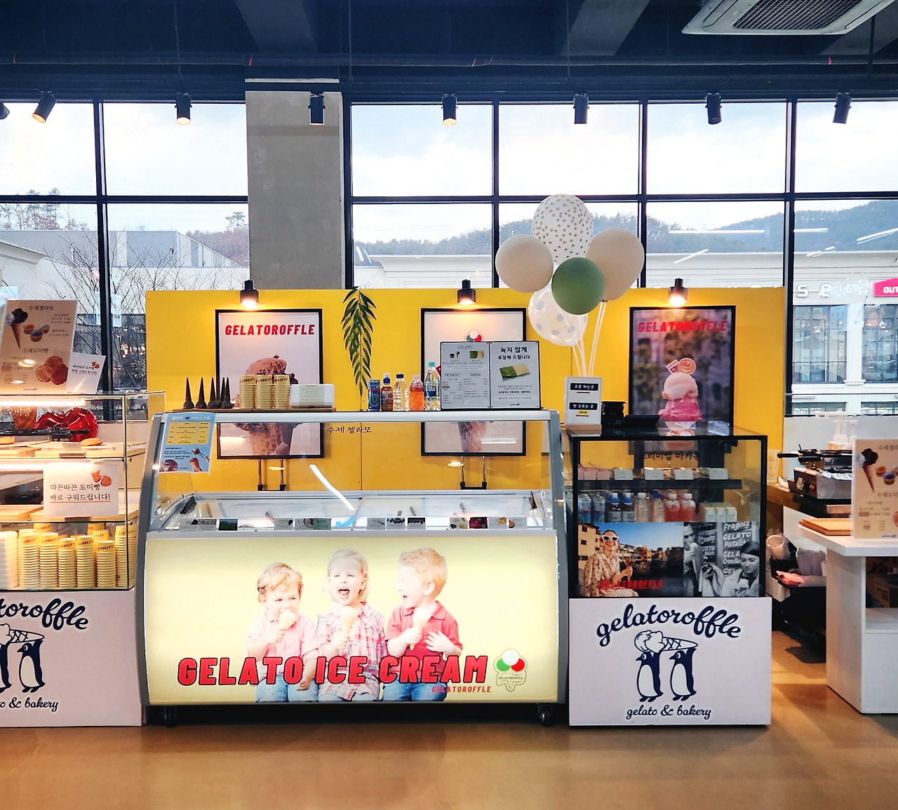 사실 젤라또 가게를 시작하기 전에 젤라또에대해 잘 몰랐던 건 사실이다. 그동안 즐겨 먹지 않아서일까? 늦게 배운 도둑질이 더 무섭다더니… 뒤늦게 알아버린 젤라또 맛에 푹 빠져버렸다. 예전엔 다른 지역에 놀러 가면 맛있는 빵집을 검색하거나 유명한 커피집을 찾아가는데 이제는 그 지역 젤라또가게를 찾기 시작했다. 젤라또 가게를 운영하면서 다른 집젤라또 맛이 궁금해졌고 우리 가게에 없는 맛을 찾아 먹어보고 같은 맛이라면 어떻게 다른지 비교를 해본다. 그 가게만의 독특한 인테리어와 귀여운 소품들도 눈여겨보고 젤라또말고 사이드 메뉴는 어떤 것들을 파는지, 젤라또와 잘 어울리는지 시식도 해본다. 지금까지 찾아가 본 모든 젤라또 가게는 귀엽다. 그리고 역시 맛있다. 이렇게 젤라또를 좋아하다가 약 1년동안 젤라또 사장님이 되었다. 원할 때마다 젤라또를 마음껏 먹는 것만큼 행복한 일이 어디 있을까. 젤라또 한 입에 행복한 마음이 피어난다. 그 행복은 사장인 나뿐만이 아니었다. 그 지역에 젤라또가게가 최초였던지라 동네사람들 모두가 행복해했다.(실제로 많은 리뷰에 그렇게 쓰여있었다.) 그 지역에서의 젤라또 가게를 운영하던 일을 잊을 수 없다. 그래서 이번엔 특수상권 푸드코트매장 안에서 3개월동안 젤라또를 팔기로 했다. 팝업매장은 본사 대표님의 비범한 손길로 푸드코트의 한 길목에 세워졌다. 아무것도 없는 무의 자리에서 작고 귀여운 젤라또 가게가 탄생되었다. 이곳에서 약 3개월간 젤라또를 아니 행복을 팔아보기로 했다. 이곳 쇼핑몰을 방문하는 모든 이들이맛있는 젤라또를 먹고 행복해졌으면 좋겠다. 이 작은 매장에서 나는 열심히 행복을 팔 것이다. 왜냐하면 젤라또는 행복의 맛이니깐.