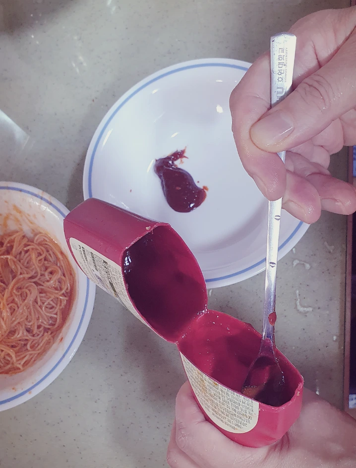 오늘 저녁 맛있는 비빔국수를 만들어먹자는 아빠가 3인분을 만들고서, 라면을 끓여 드신다고 한다. 이유는 1인분의 비빔장이 모자라서..