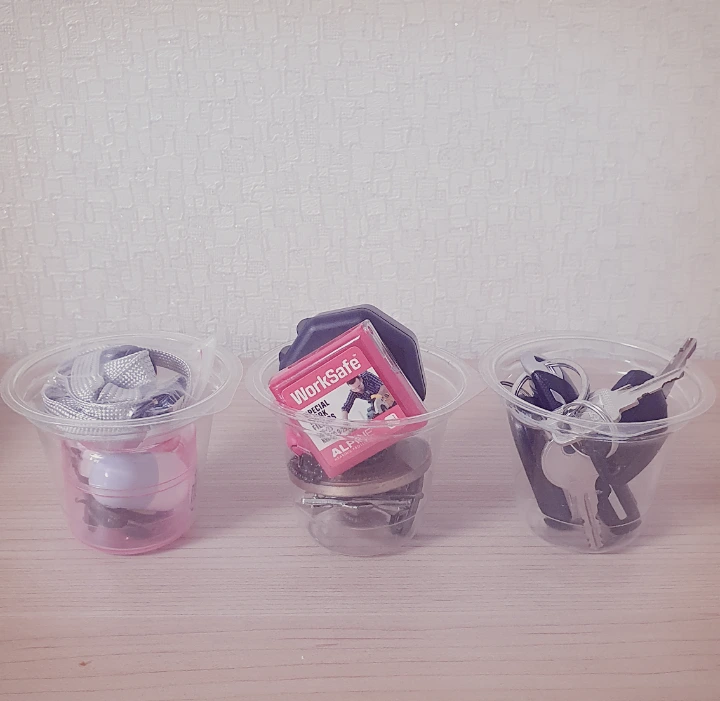 아이가 젤리를 먹으면 분리수거를 하기 위해 깨끗하게 씻어서 말려놓는데, 문득 젤리 통이 튼튼하고 견고해 보여서 그날부터 젤리 통도 모아두기 시작했다. 요거트컵보다 크기도 크고 튼튼해서 좀 더 무게가 있는 소지품을 담아두기에 좋다.