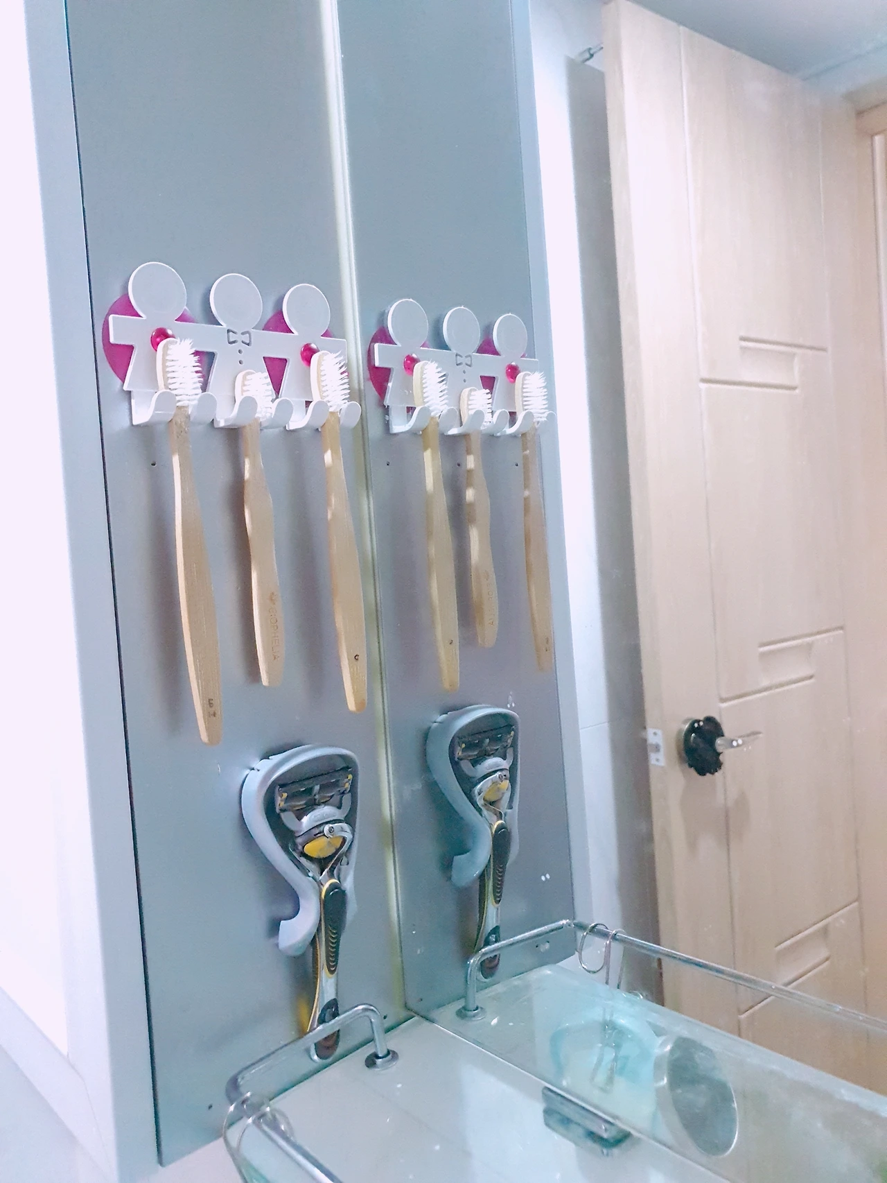 욕실의 제로 웨이스트 아이템 중 가장 좋아하는 것은 '대나무 칫솔'이다. 플라스틱보다 썩는 시간이 적게 걸려 지구에게도 조금이나마 덜 해롭고 미세 플라스틱으로부터 벗어나 우리의 건강에도 안전하다. 그리고 덤으로 대나무로 만든 칫솔은 '우드 감성' 인테리어 효과까지 있다.