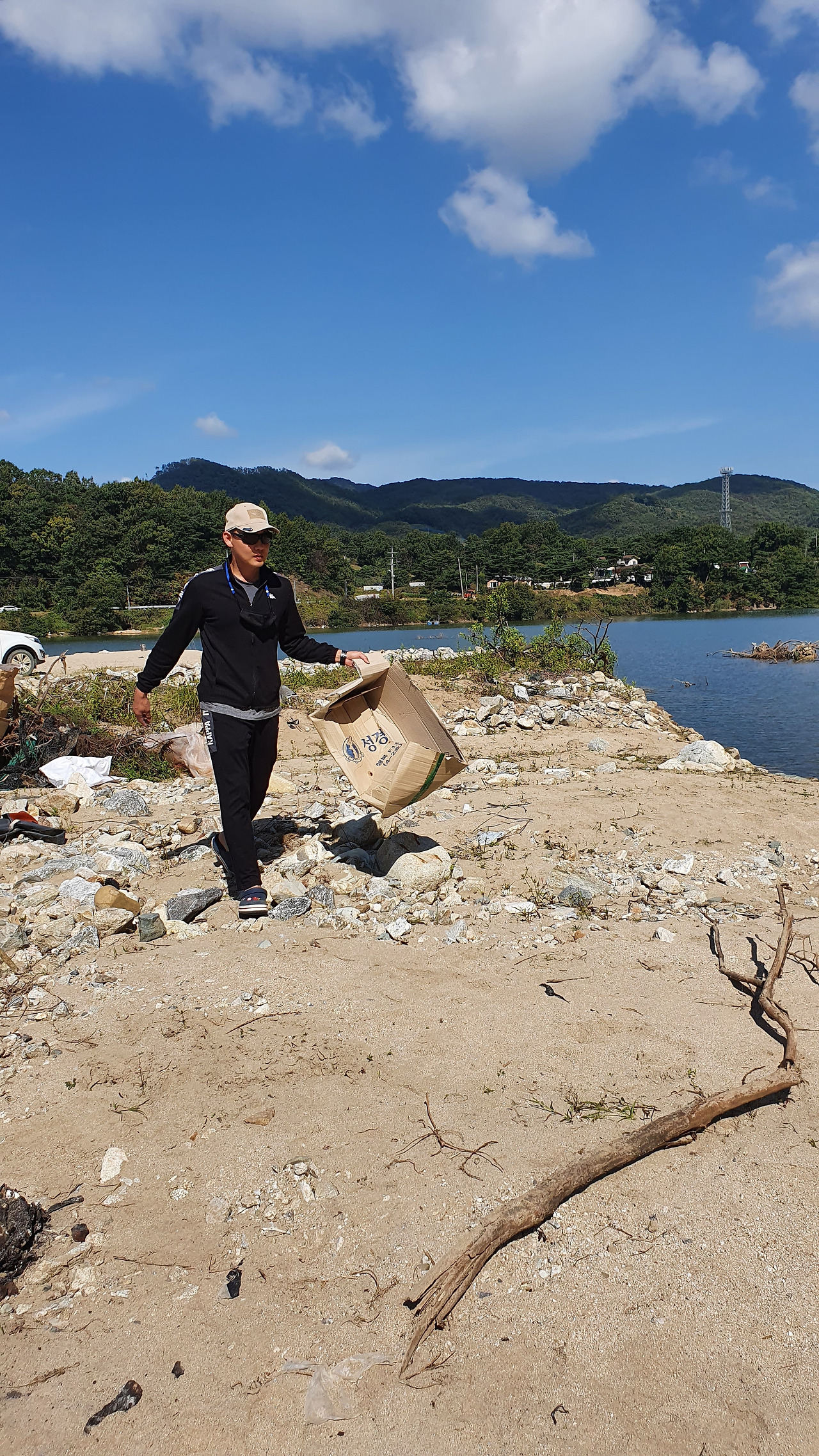 이곳은 캠핑장도 아니고, 유명한 관광지도 아니다. 그냥 시골길 가에 있는 작은 저수지였다. 가끔가다 낚시하는 사람들이 들리는 곳이라고 했다. 이런 곳에 쓰레기가 너무 많았다. 신발, 간식 쓰레기, 비닐봉지, 양말, 일회용 컵, 고무장갑.. 조합하기 힘든 쓰레기들이 모여 있었다. 비닐은 너무 삭아서 주울 때마다 뜯어져서 줍기조차 힘들었다.