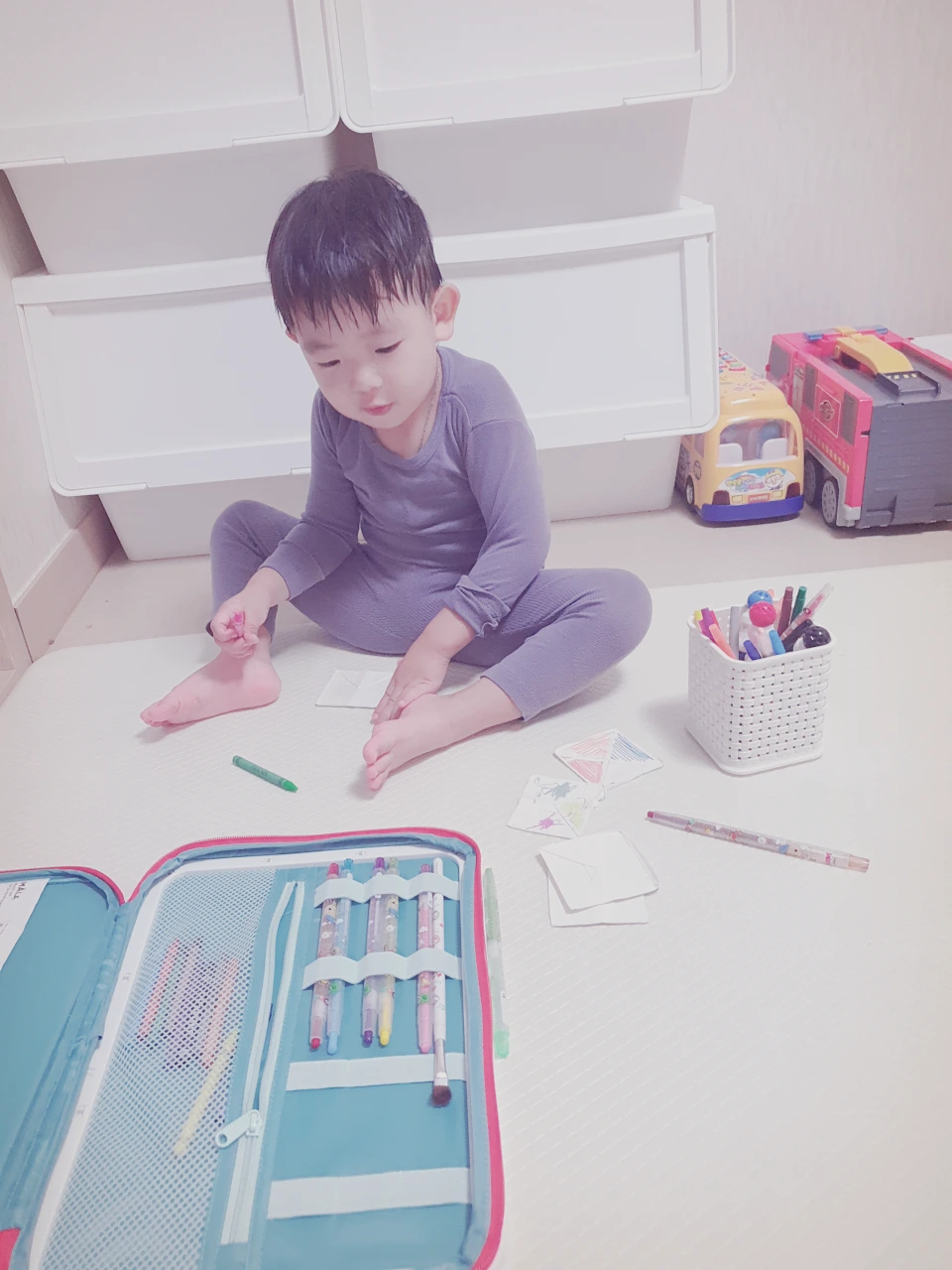 네 번째, 우유팩의 밑바닥은 아이와 딱지치기 놀이를 할 수 있다. 다른 종이들보다 두툼해서 딱지처럼 가지고 놀기 좋다. 색연필을 사용해 색칠도 하고 스티커도 붙여 나만의 딱지를 만든다. 아이가 좋아하고함께 만들다 보면시간도 금방 간다.