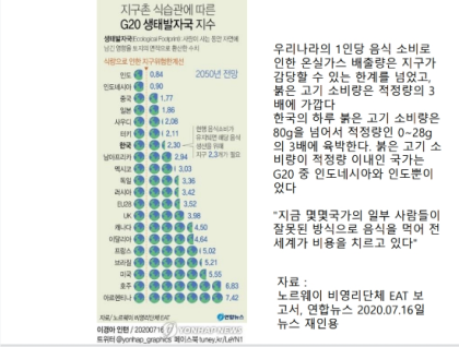 어느 날 우연히 본 기사에서 우리나라의 1인당 음식 소비로 인한 온실가스 배출량은 지구가 감당할 수 있는 한계를 넘었다고 한다.