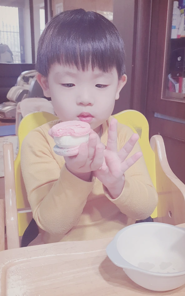 집으로 돌아와 낮잠이 깬 아이와 사이좋게 유리용기에 싸 온 마카롱을 나눠먹었다.