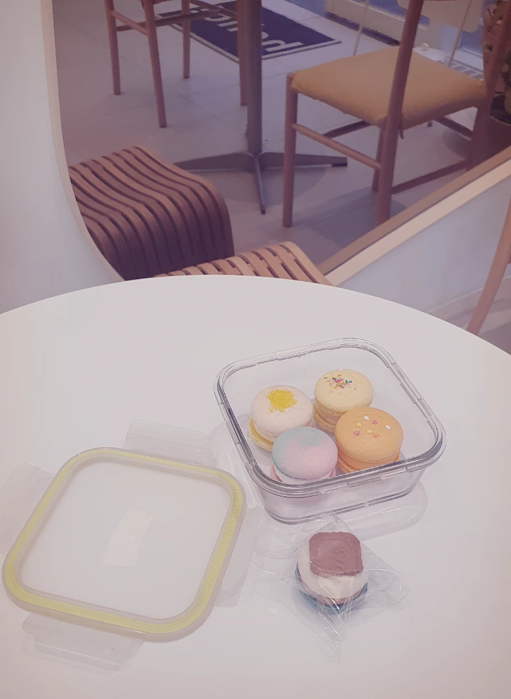 오늘도 마카롱 집에서 '용기'내기는 성공했다. 그리고 감사하게도 마카롱 하나를 덤으로 주셨다. 마카롱 집에서 덤은 상상도 못 할 일이었는데.. 내 용기는 마카롱으로 꽉 찼고, 비닐 쓰레기들은 줄었다.