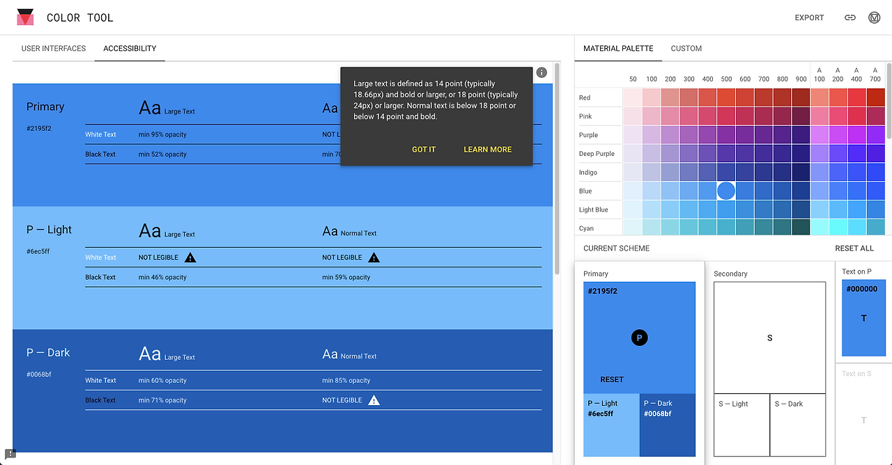 APCA는 이제 시작입니다. 지금까지 설명드렸던 변화될 모습은 논의 중인 사항의 일부로 완벽한 확정이 아닙니다. (제가 글을 게시한 시점에서 이틀 전에도 규정이 수정되었습니다.) 아래와 같이 이 새로운 기준을 담은 색상 팔레트 제작 툴도 하나둘씩 나오고 있는데요. 아래의 링크로 확인해보실 수 있습니다. 또한 처음 Myndex 문제를 제기한 github페이지를 보시면 APCA와 연관된 여러 다른 이슈 페이지들이 생겨나고 있습니다. 흥미롭다고 생각하시는 분들은 참여하시어 직접 표준화에 기여를 해 보아도 좋을 것 같습니다.
