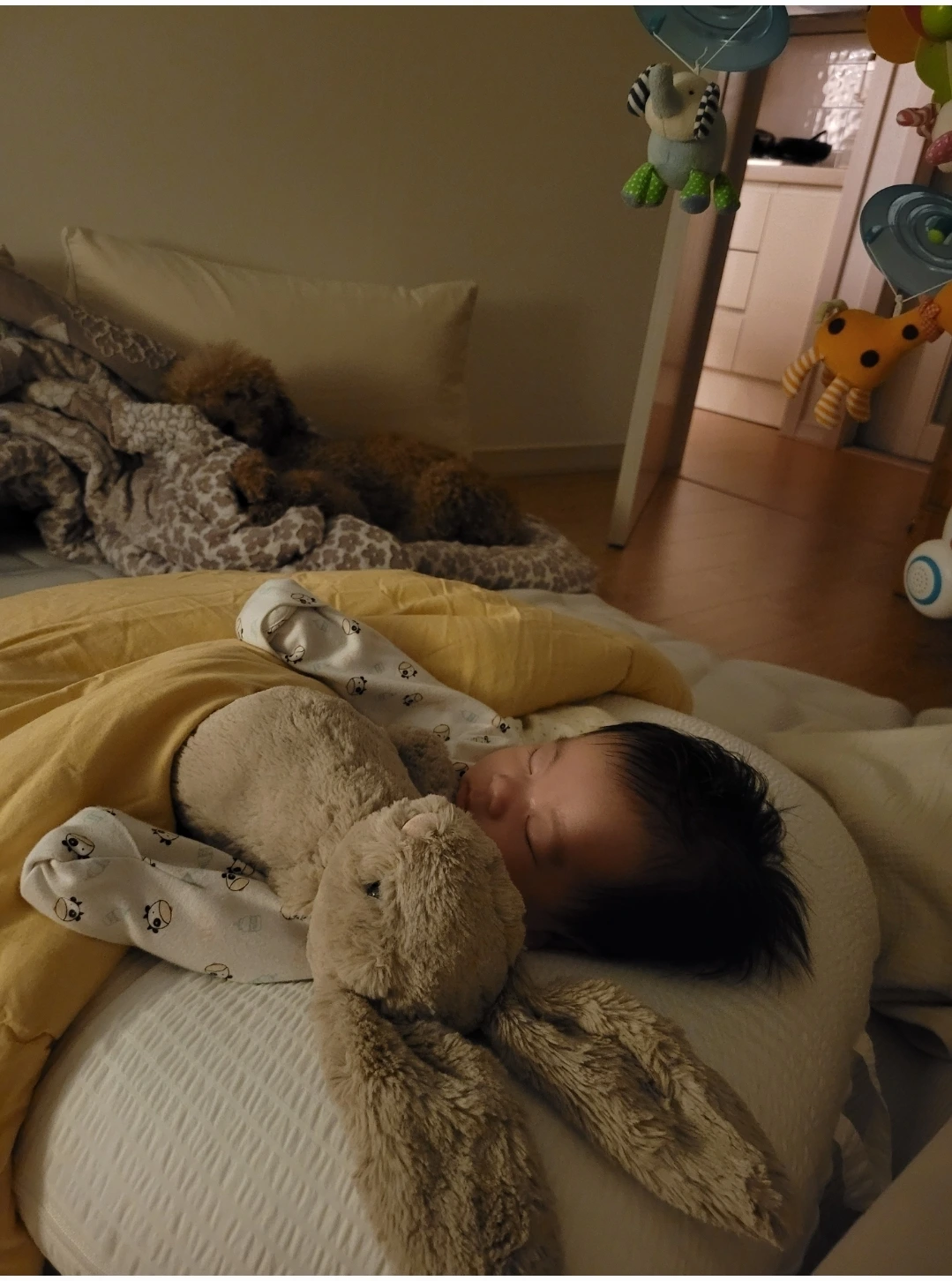 요즘엔 아기와 함께하는 삶에 적응이 되었는지 아기가 울어도 단비가 잘 잔다 ^^