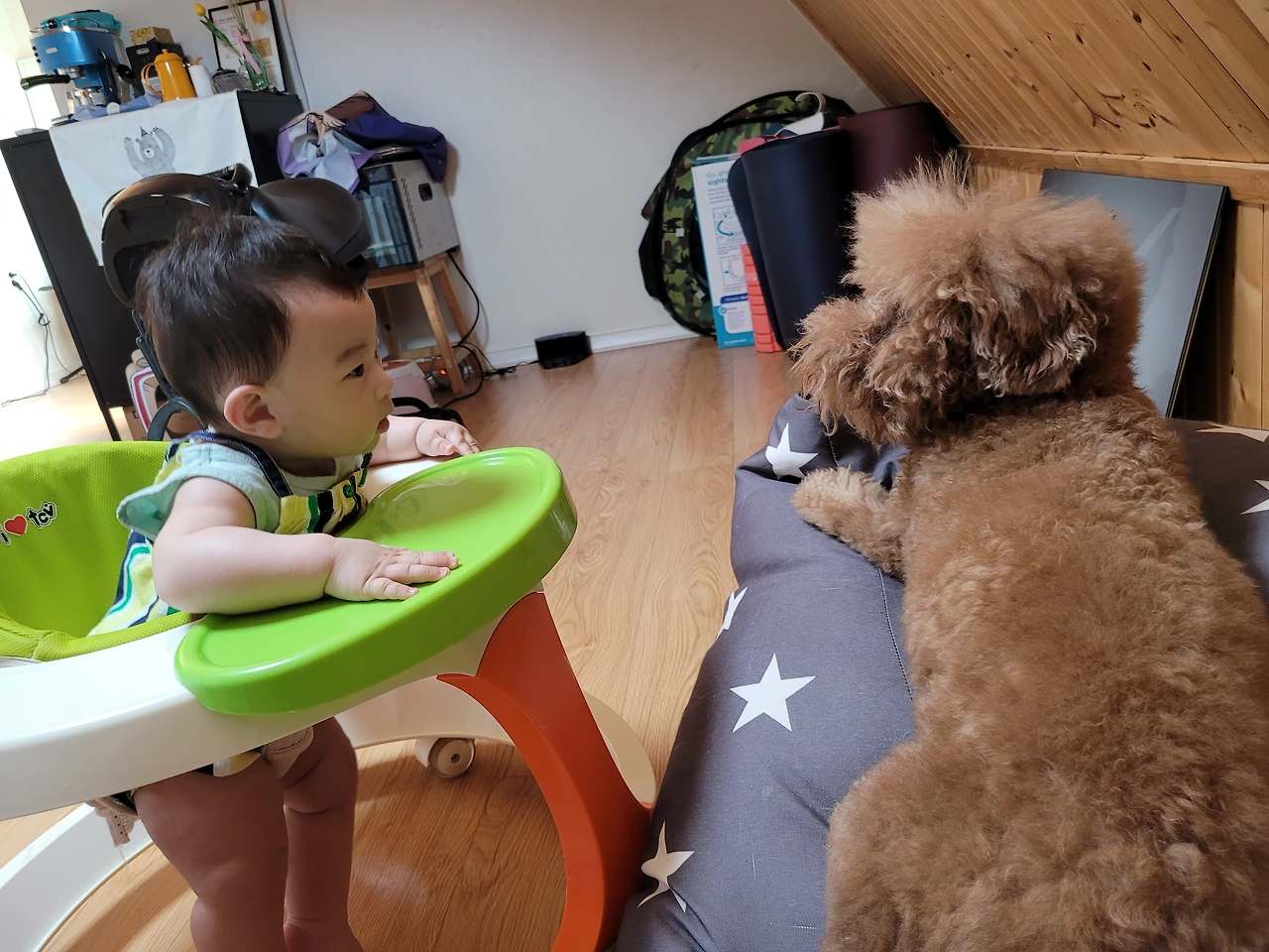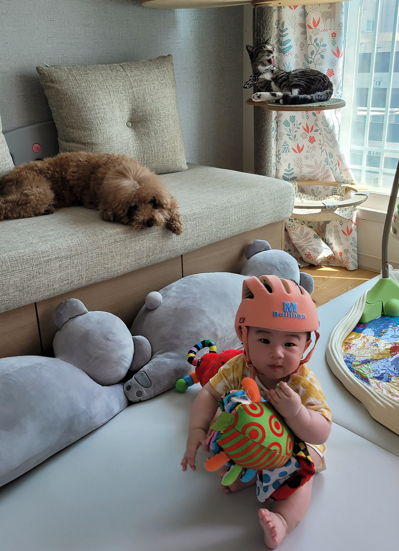 처음엔 우리 집 네발 가족들과 아기를 분리하기 위해 영역을 나누기에 바빴지만 댕댕이 단비와 야옹이 봄비랑 함께 지내면서 어느덧 우리에게 공동경비구역이 생겨났다.