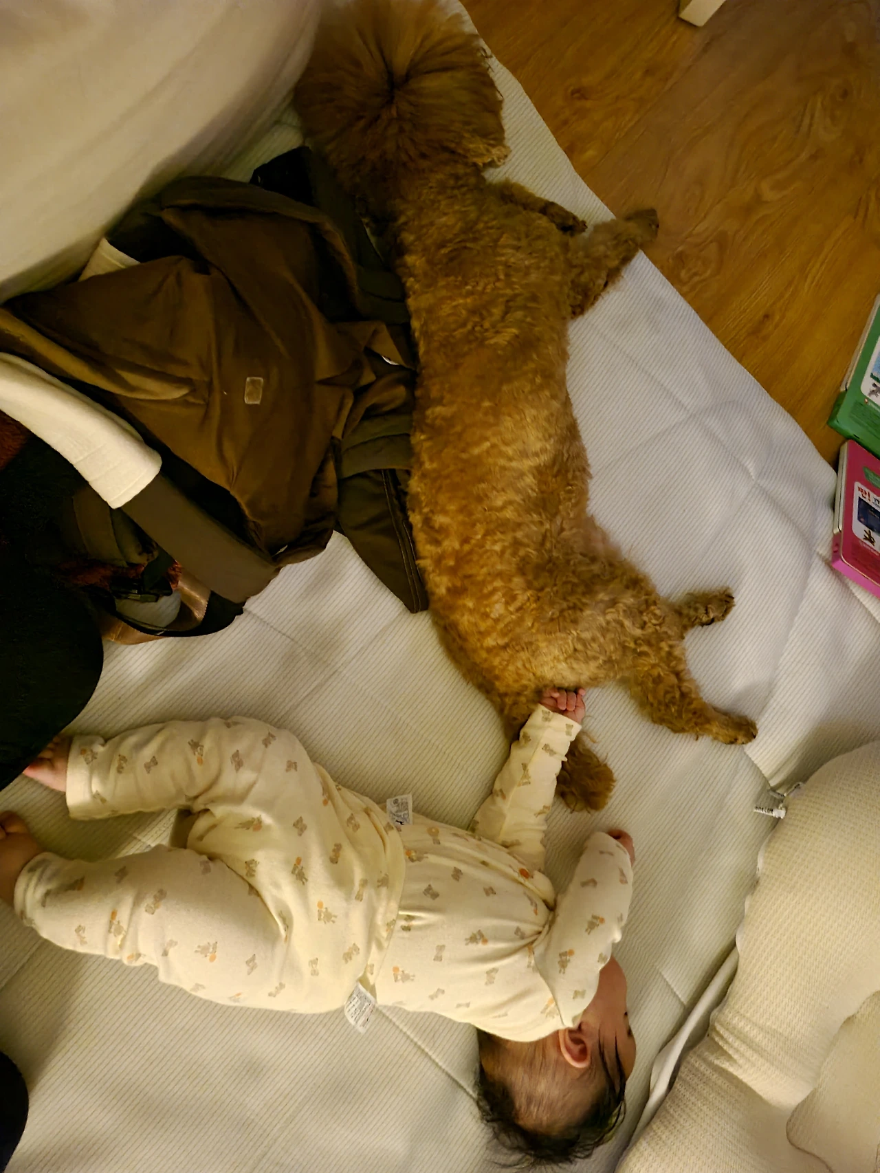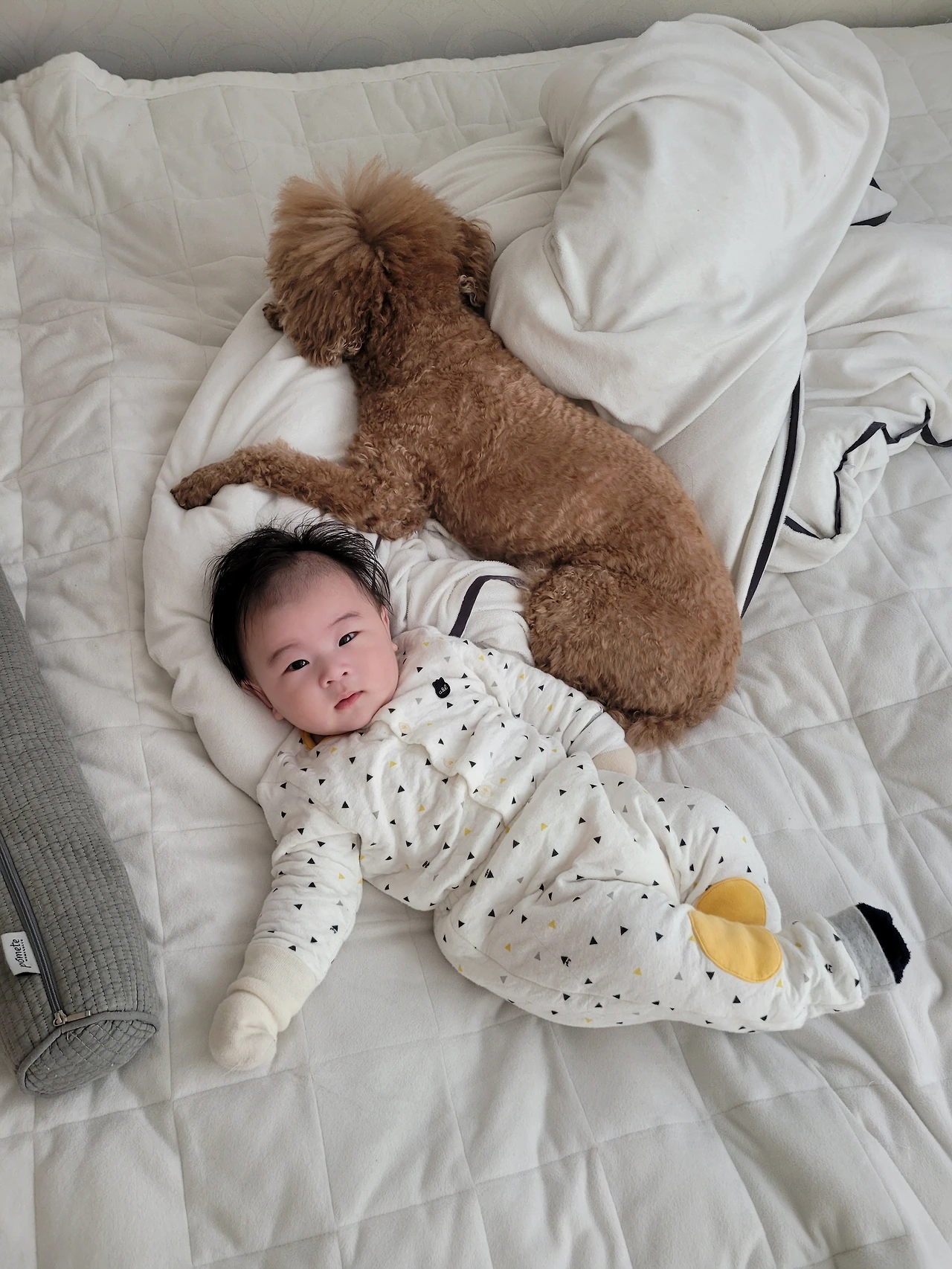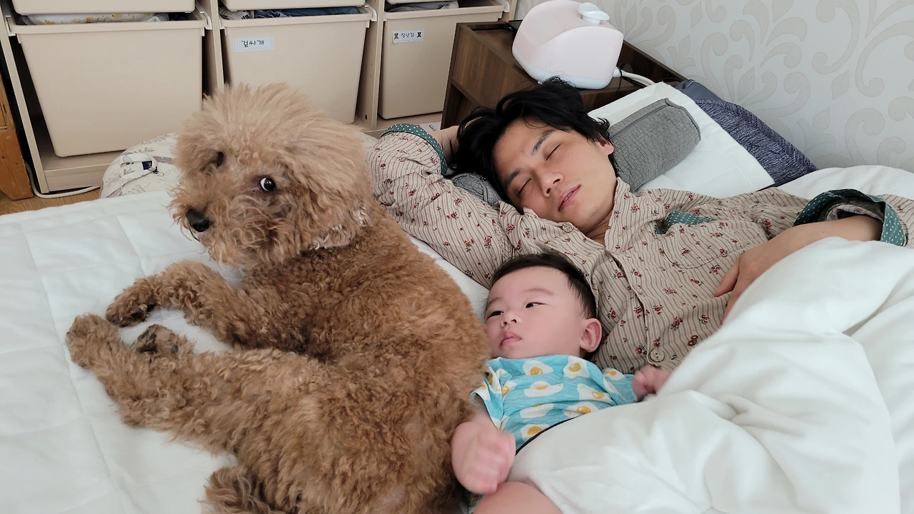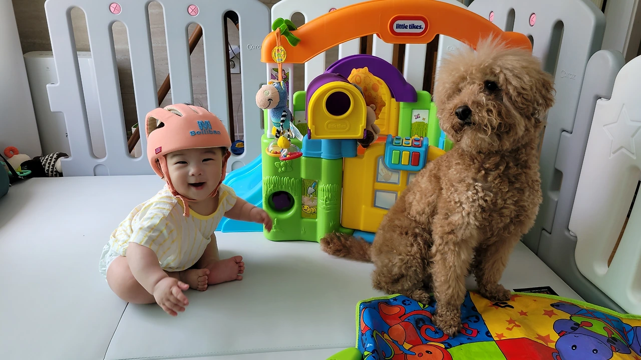 단비와 제법 친해진 아기는 뒹그르르 놀다가 단비 옆에서 단비를 만지작하다 잠이 들기도 하고