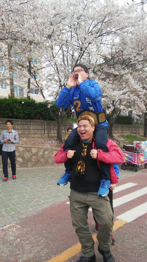짧은 스포츠머리, 넓고 다부진 어깨, 안경 너머로 이글이글 불타는 눈동자가 인상적이었던 레전드 레슬러 여건부 선생을 연상시키는 매우 사내다운 분이었다. 지금은 많이 알려진 사실이지만 당시 선거 운동 현장에선 세월호 유가족들이 박 후보를 돕기 위해서 인형탈을 쓰고 춤을 추고 있었다. 자식과 가족을 잃은 아픔이 있는 이들이, 먼저 세상을 떠나버린 이들의 한을 풀 수 있는 방법으로, 세월호 변호사 박주민 후보를 국회에 보내는 것이 사실상 거의 유일한 방법이기에, 보통사람으론 도저히 상상할 수 없는 결단을 통해 그런 지원을 하신 것이다.