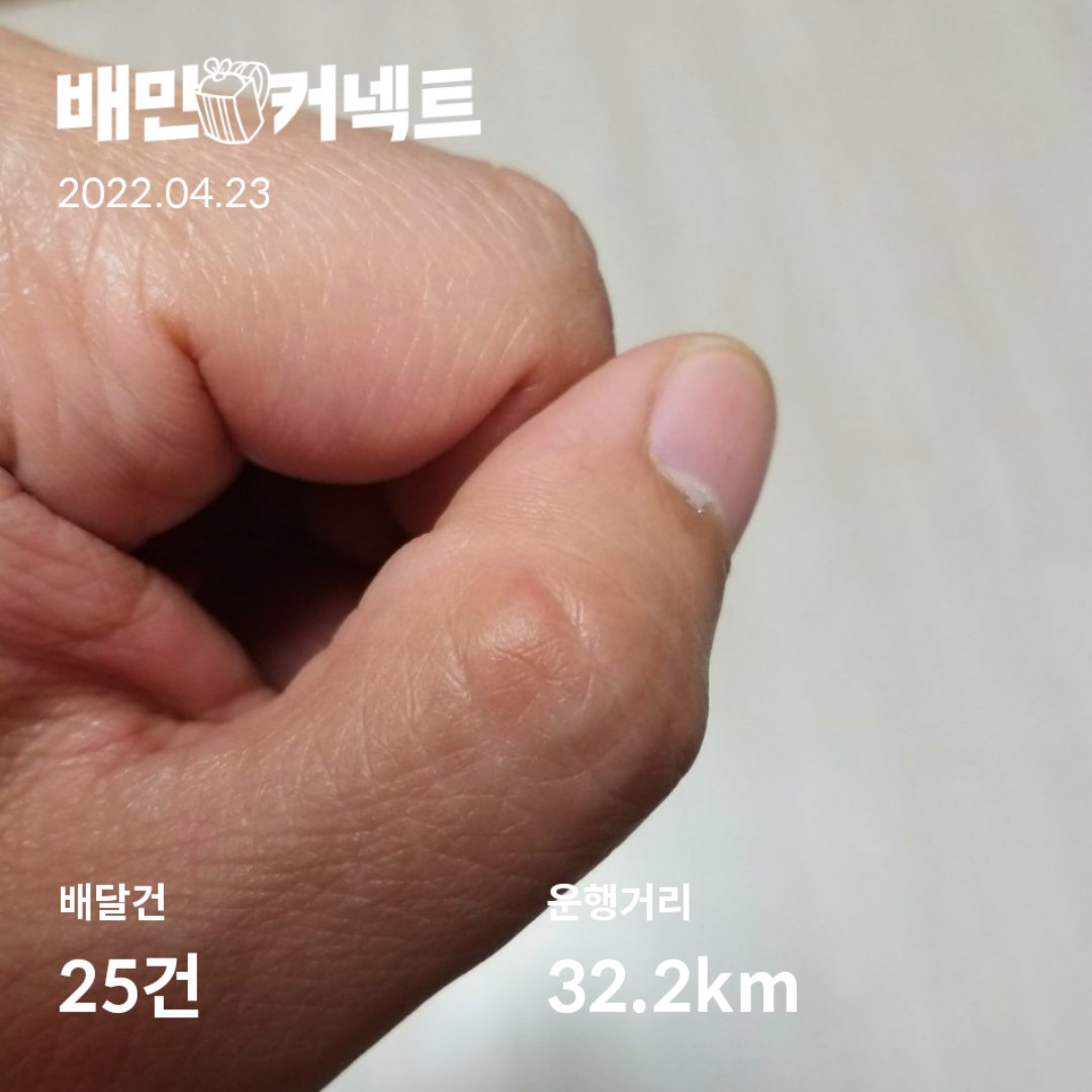 자전거 핸들을 쥐고 오래 운전하다보니 엄지 손가락 마디 위에 못이 생겼다. 육체노동자라면 누구나 몸 어느 한 군데에 꼭 가지고 있는 훈장 같은 것이다.