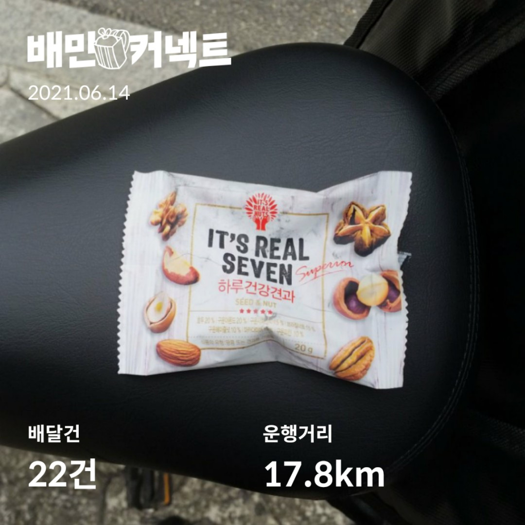 배달 다니다 자주 보는 '동종 업계'의 젊은 친구가 건넨 견과류. 이 맛난 견과류의 다른 이름을 "동료애"라 부른다.