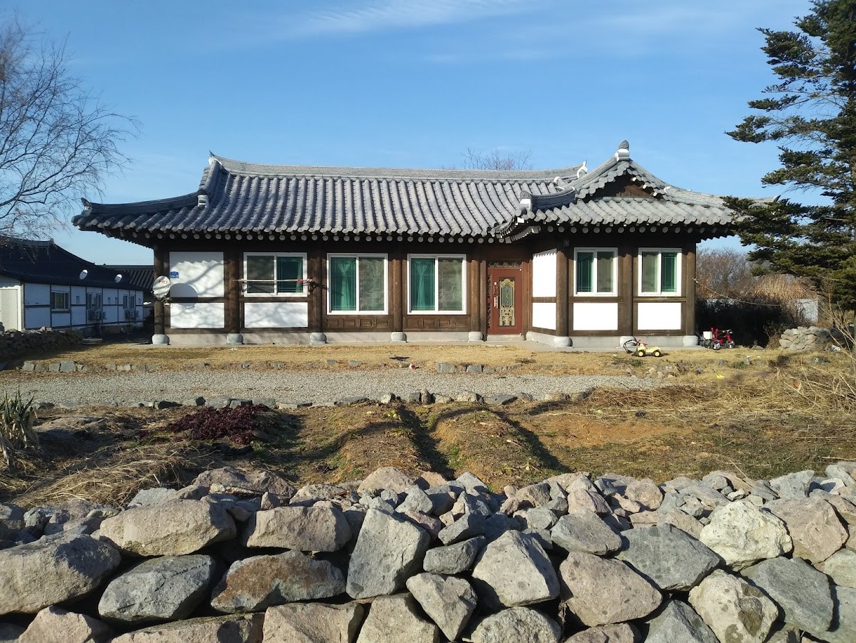 마당이 넓은 돌담으로 둘러싸인 한옥집 사진 한 장과 함께.