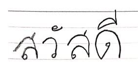 매일 만나는 누구에게나 하는 인사다. 양 손을 붙여서 머리에 대고 고개 숙이며 인사한다. 친구랑 안녕할 때도 쓴다. 그때는 그냥 손을 흔들며 인사하면 된다. 싸왓디 하면서 손을 흔드는 것이다. 우리가 그냥 친구에게 안녕하듯이. 이것은 헤어질 때도 꼭 같이 쓴다. 즉 안녕하세요. 안녕히 계세요. 모두 쓴다. 친구나 부모에게 안녕히 계세요 할 때 그냥 싸왓디 하면 된다. 엄마 안녕~ 하면서 떠나올 때 손 흔들며 싸왓디 하면 된다.
