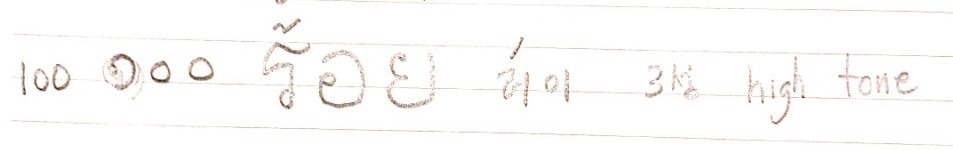 장모음에 + 어앙 중자음 + 렉뺏 + 더덱 사음엔딩 = 엗 1성 low tone