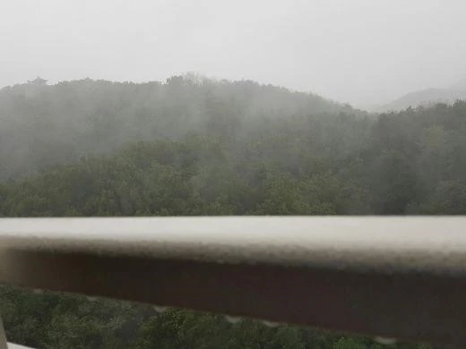 창문 바로 앞에서 거인이 커다란 양동이로 물을 팍팍 끼얹듯 창을 두드리는 물세례. 거센 바람에 그 커다란 유리 창문이 흔들흔들. 창문을 열 수도 밖에 나갈 수도 없다.