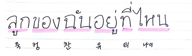 룩컹찬유티나이크랍: 내 공 어디 있어요? (크랍을 붙임으로 남자가 말할 때의 존대어가 된다.)