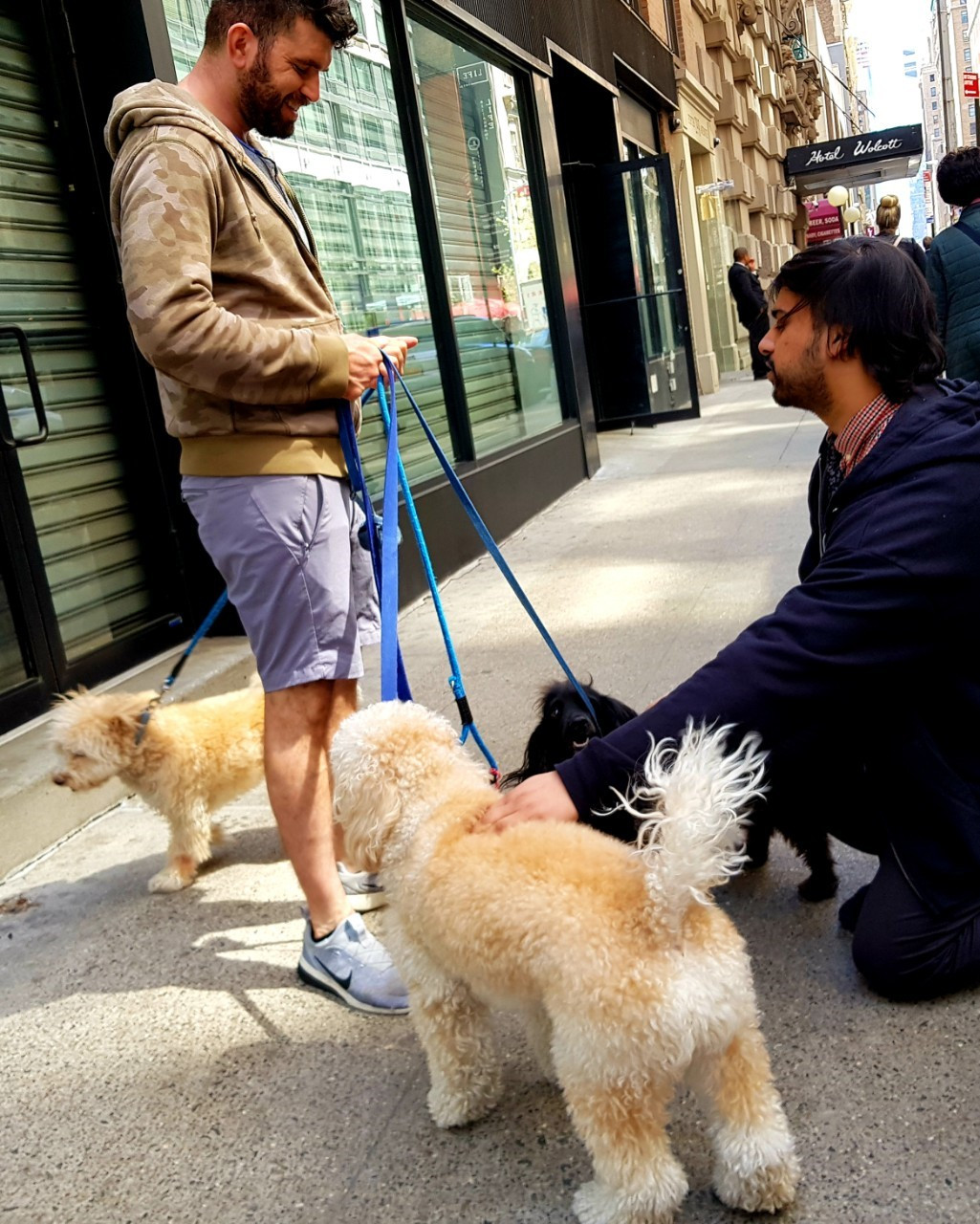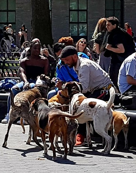 편히 앉아 핸폰을 즐기는 젊은이들. 일광욕을 즐기는 명품 개들. 어디를 가나 한 명이 이렇게 많은 개를 데리고다닌다는 게 신기했는데 이젠 그 의문이 다 풀렸다. 개워커~
