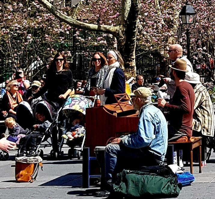 각양각색 공연이 펼쳐지는 것으로 유명한 이곳. 오늘도 어김없이 멋진 연주가 펼쳐지고 있다. 관객은 그 곳을 찾은 모든 사람들. 유모차 탄 금발아가에서부터 아가들 엄마 휠체어탄 할아버지까지. 따스한 햇살아래 퐁퐁 분수가 솟아오르고 피아노 소리가 퍼져나온다. 아, 좋다. 문득 평화로워지는 이 기분이라니.