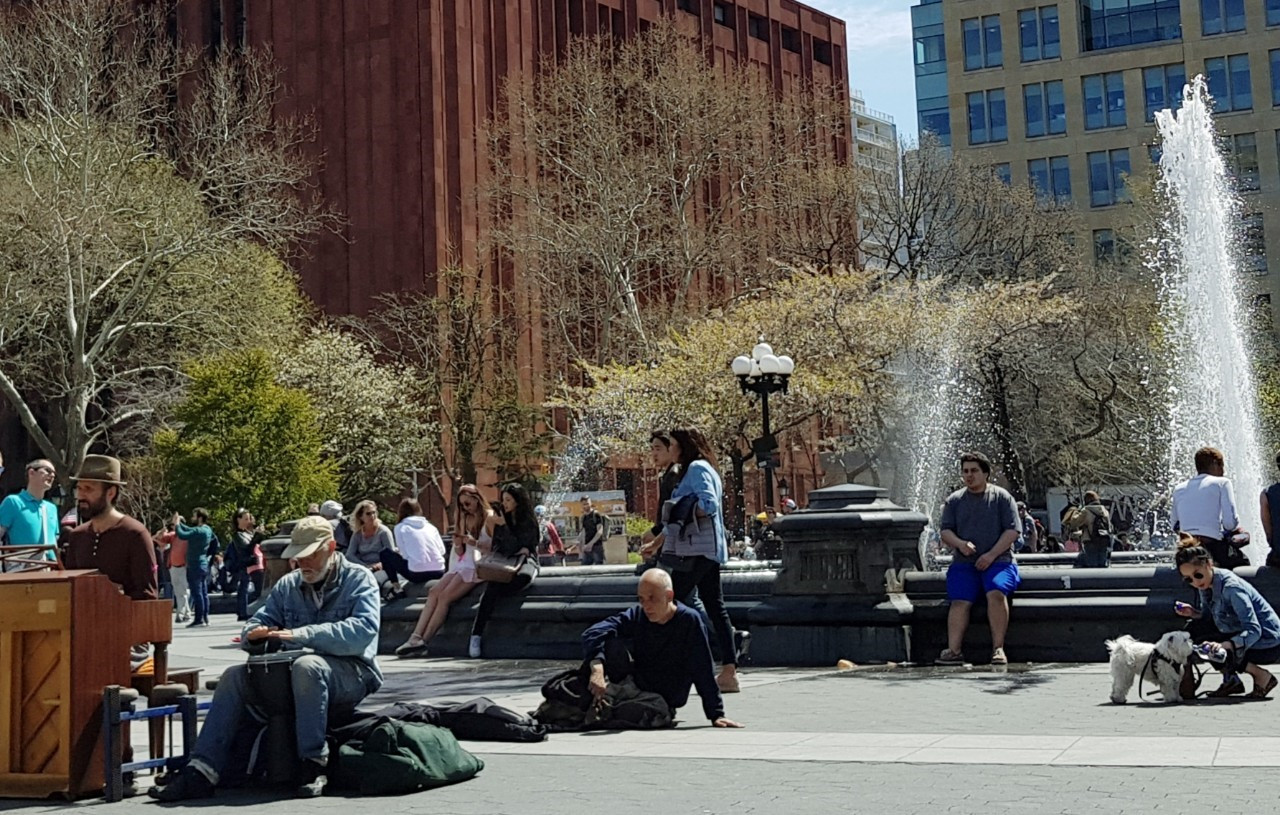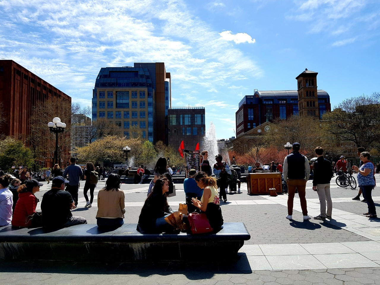 워싱턴 스퀘어 파크는 그리니치 빌리지 중심에 있는 공원으로 뉴욕대학 캠퍼스 같은 곳이다. 가족 단위로 나와 따스한 햇빛을 즐기는 사람들. 대학생 안대학생 모두 섞여 있는 곳~