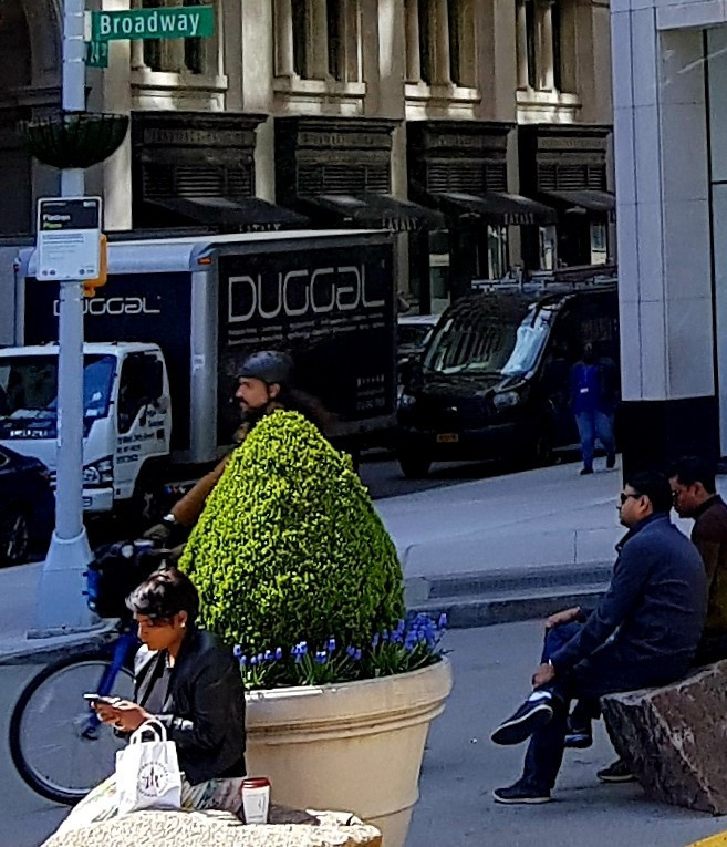 누군가를 기다리는 예쁜 여인, 핸폰에 빠져있는 중동 아지메~, 햇빛 쏟아지는 대로를 성큼성큼 상쾌하게 걷는 킬힐의 금발 미녀. 세계의 중심 뉴욕 한복판이라도 사람들의 일상은 모두 비슷하여라. 꼼짝않고 멈춰있는 버스안에 앉아 기회는 요때닷 신나게 뉴요커들을 관람한다.