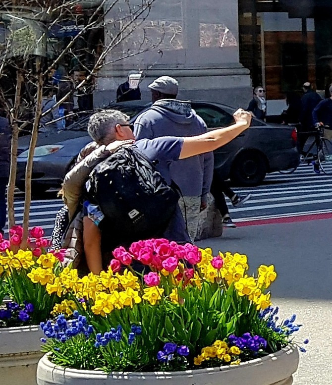 쎌카에 집중하는연인~ 갈 길을 잊고 핸드폰 보기에 여념없는 여인, 여행온 것일까. 왁자지껄 시끌시끌 젊은 무리 한가득, 그냥 거리에 있는 사람도 사물도 모두모두 뉴욕뉴욕 지금 내가 뉴욕 한복판에 있음을 상기시켜준다.