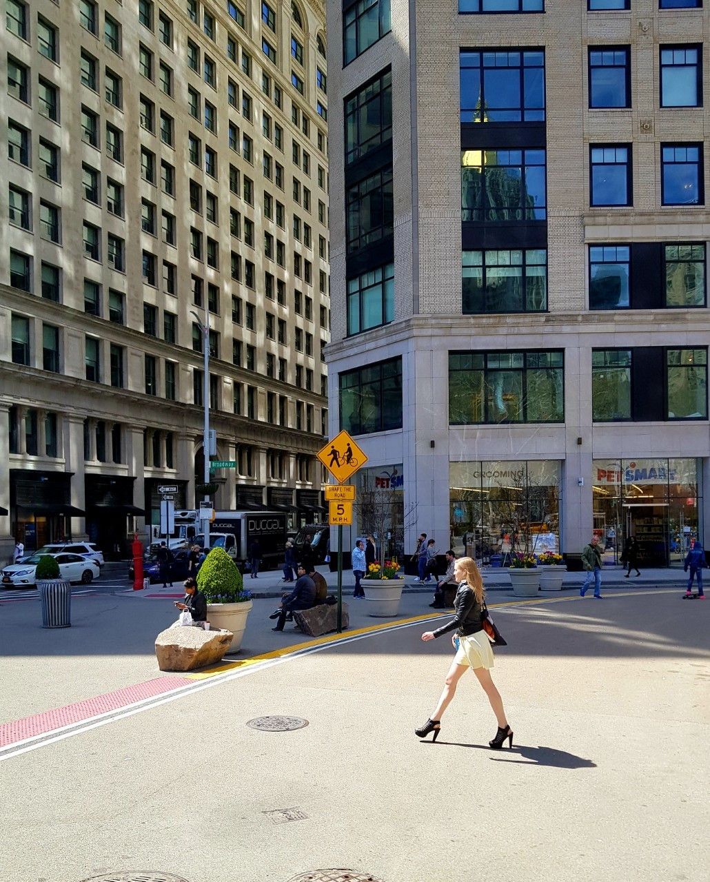 버스에서 내려 배를 타기 전까지 뉴욕 거리를 여유있게 슬슬 걸어다니기로 한다. 여전히 대롱대롱 바람에 흔들거리는 신호등 내 눈에 자꾸 들어온다. 동네 산책하듯 뉴욕 거리를 걷는다.