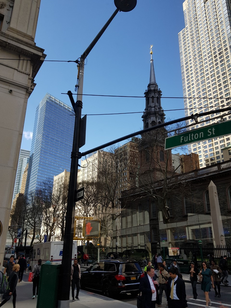 정말 많은 개랑 함께 하는 사람 아마도 개워커~이리라 하하 이제 척하면 척이다. 성당을 지나 세계 금융의 중심지 월 스트리트 Wall Stree에 도착한다. 동서로 2km 거리에 뉴욕 증권 거래소, 미 상공 회의소, 연방 준비은행, 체이스 맨해튼 은행등 여러 건물이 모여 있는 세계 금융의 중심지 월스트리트에 내가!