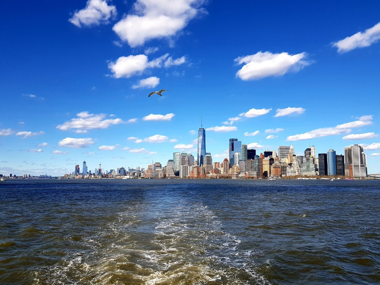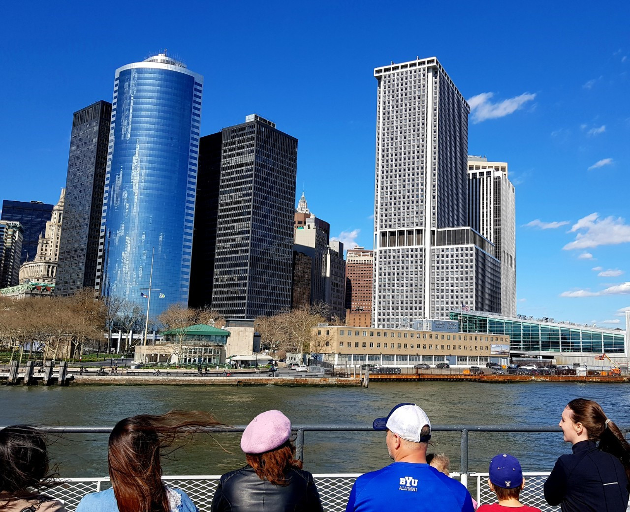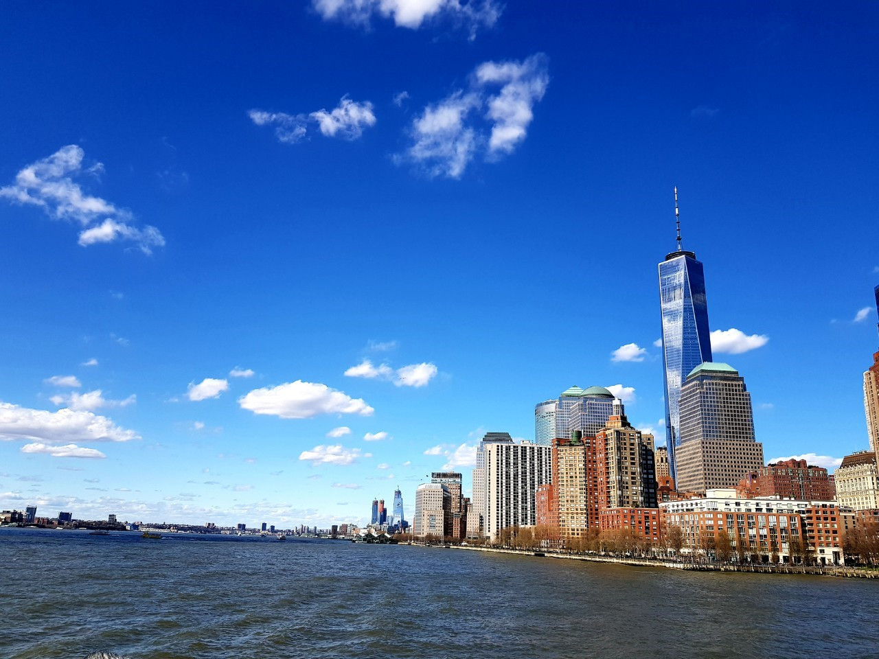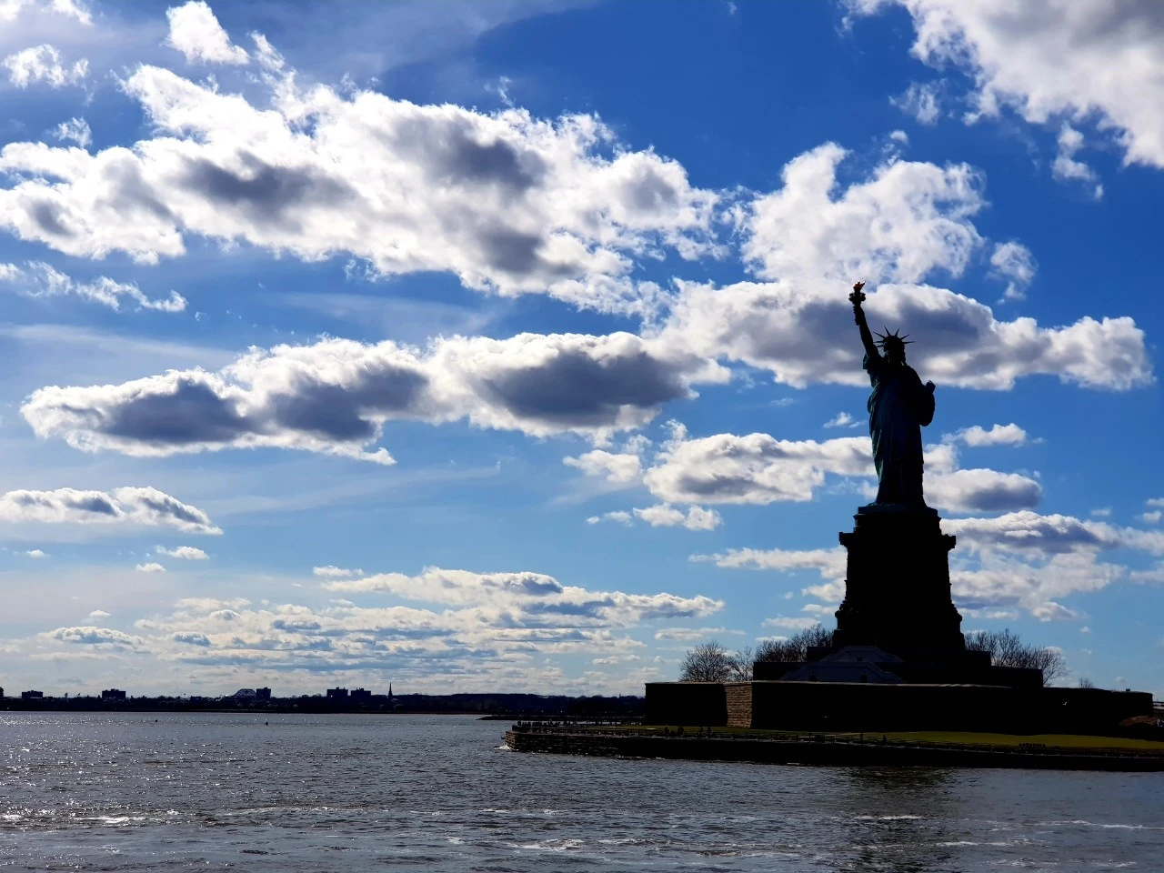 왕관에 달린 7개의 뿔은 북극해 남극해 남대서양 북대서양 북태평양 남태평양 인도양 7개의 바다와 전 세계의 대륙을 향해 자유의 빛이 뻗어 나간 다는 것을 의미한다. 몸을 감싸고 있는 긴 옷은 민주주의를 실행한 로마 공화국을 상징하고 자세히 보면 여신상이 쇠사슬을 발로 밟고 있는데 노예제도 폐지를 의미한단다. 캬~ 돛단배도 멋지고 스카이라인도 멋지고 파란 하늘도 멋지고 바다같은 강도 멋지고 캬~ 캬~ 캬~ 감탄사만 줄줄줄줄
