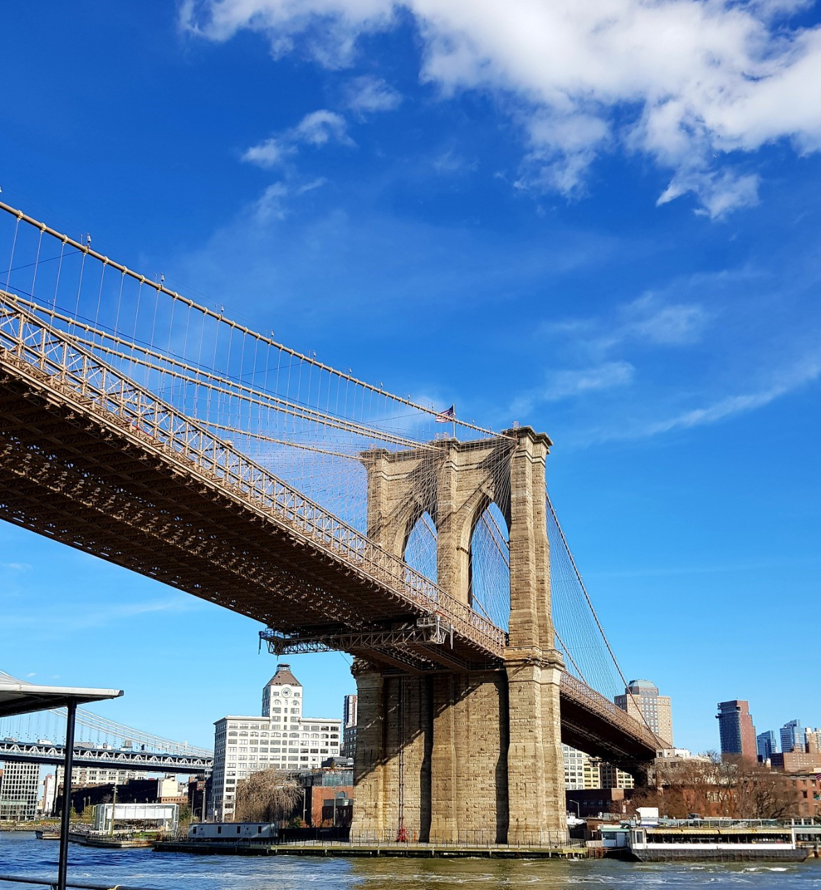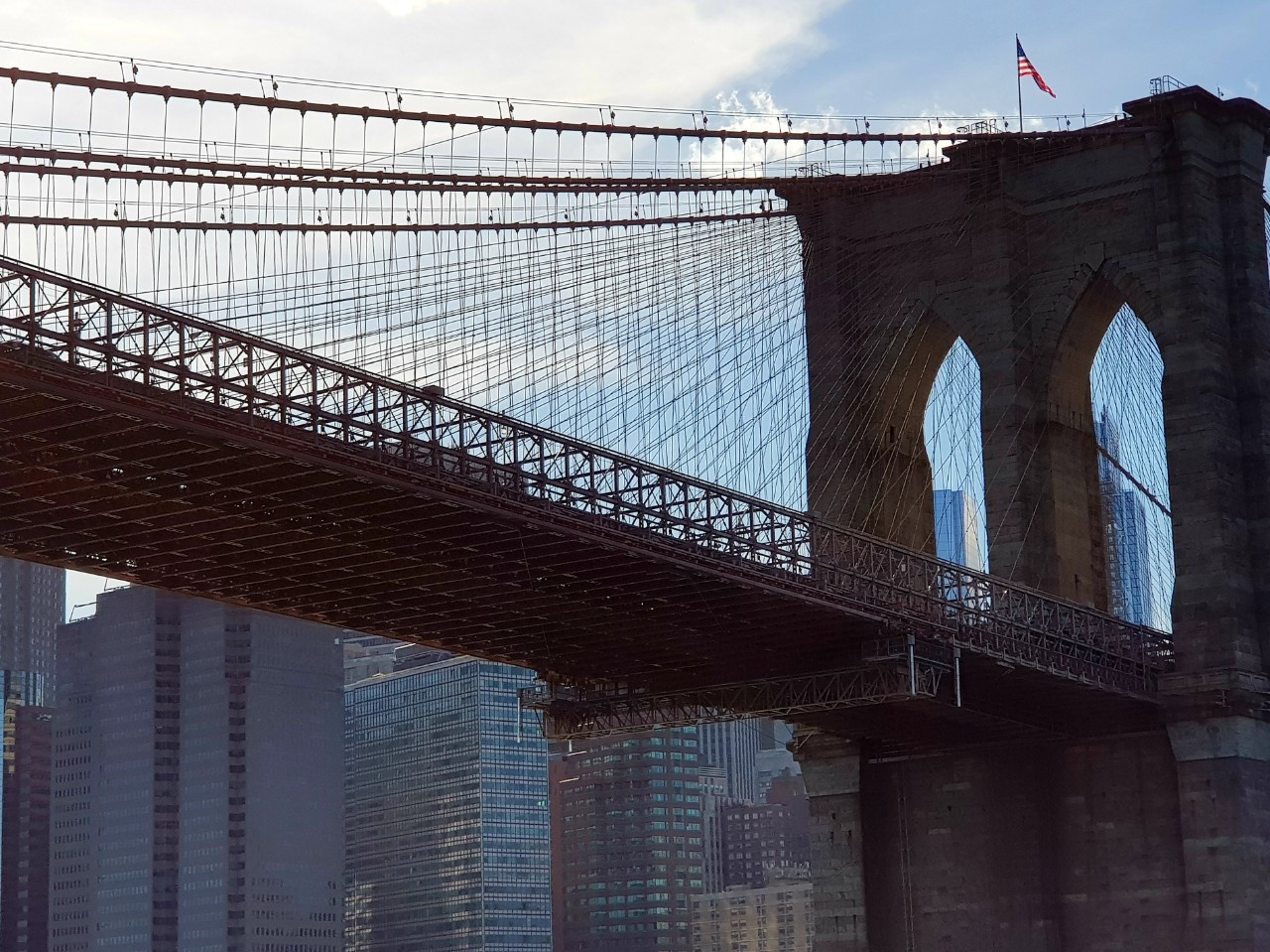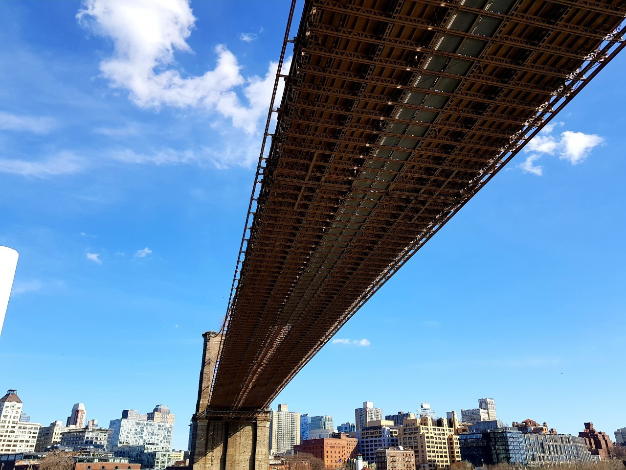 오마낫 저거!그 유명한 브루클린 다리 아냐? 그치. 영화에서 보던 바로 그 다리 Brooklyn Bridge! 미국 뉴욕 시의 이스트 강에 놓인 다리. 왕복 6차로 1869년 착공해 1883년 완공한다. 당시 1.8키로 길이로 세계에서 가장 긴 현수교 면서 뉴욕에서 가장 높은 건축물이었다. 게다가 세계 최초로 철 케이블을 사용해 19세기 중요한 기계공학 업적을 남긴다. 지금 뉴욕의 매우 중요한 교통로이자 관광지, 미국에서 가장 오래된 다리이다. 양 쪽으로 차로가 있고 그 한 가운데에 널찍한 보행자용 길이 있다. 뉴욕 맨해튼과 뉴욕 브루클린을 잇는다. 뉴욕 특유의 무지막지한 차량통행량과 별개로 중앙에 보행자용 보도가 있어 이 길을 걷는 시민들과 관광객이 많다.