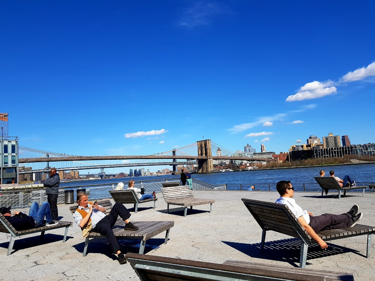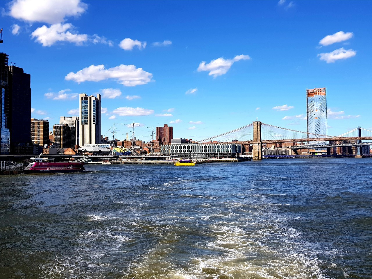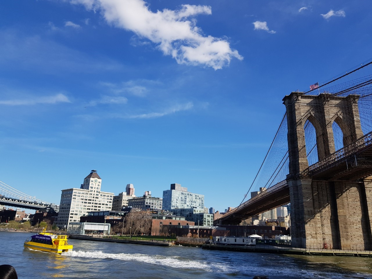 오마낫 저거!그 유명한 브루클린 다리 아냐? 그치. 영화에서 보던 바로 그 다리 Brooklyn Bridge! 미국 뉴욕 시의 이스트 강에 놓인 다리. 왕복 6차로 1869년 착공해 1883년 완공한다. 당시 1.8키로 길이로 세계에서 가장 긴 현수교 면서 뉴욕에서 가장 높은 건축물이었다. 게다가 세계 최초로 철 케이블을 사용해 19세기 중요한 기계공학 업적을 남긴다. 지금 뉴욕의 매우 중요한 교통로이자 관광지, 미국에서 가장 오래된 다리이다. 양 쪽으로 차로가 있고 그 한 가운데에 널찍한 보행자용 길이 있다. 뉴욕 맨해튼과 뉴욕 브루클린을 잇는다. 뉴욕 특유의 무지막지한 차량통행량과 별개로 중앙에 보행자용 보도가 있어 이 길을 걷는 시민들과 관광객이 많다.