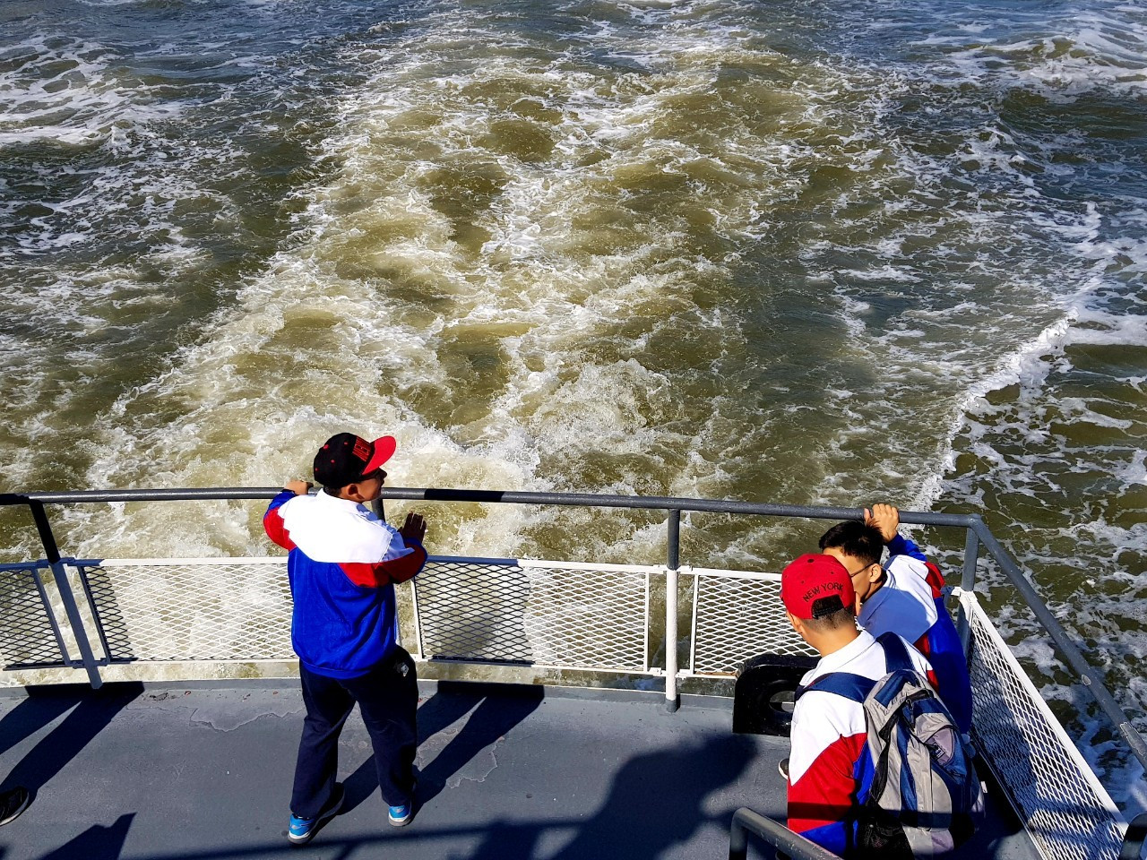 드디어 배를 탄다. 우리들 한 손엔 커피가 들려있다. 순기가 버리라한다. 아깝지만 두 손 자유롭게 사진촬영이 더 중요하므로 기꺼이 오케이~ 휴지통에 버린다. 배 위에서 음미하는 커피~꽤 괜찮겠지만