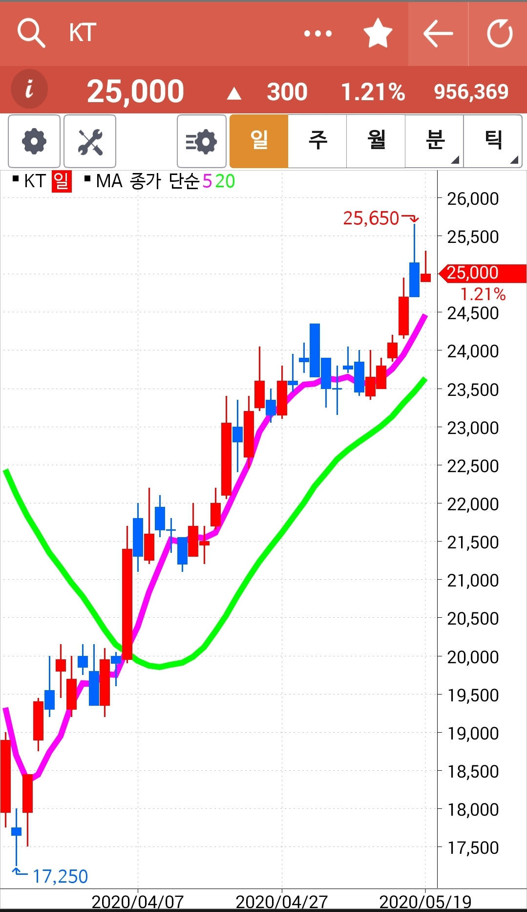 차트를 보시라. 보랏빛 5일선이 연둣빛 20일선을 빵! 뚫고 올라오는 게 보이는가? 그건 내게 매수! 지시. 그래서 난 나의 원칙대로 매수했다. 이렇게 높은 데? 이렇게 올랐는데? 곧 떨어질 텐데? 그런 건 난 아무것도 모른다. 보랏빛 5일선이 올라오니까 매수할 뿐!
