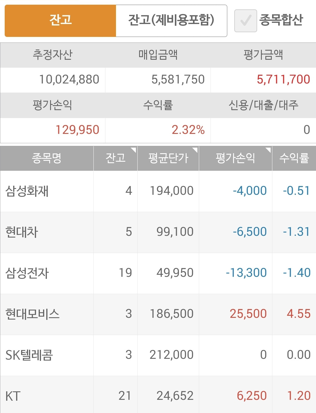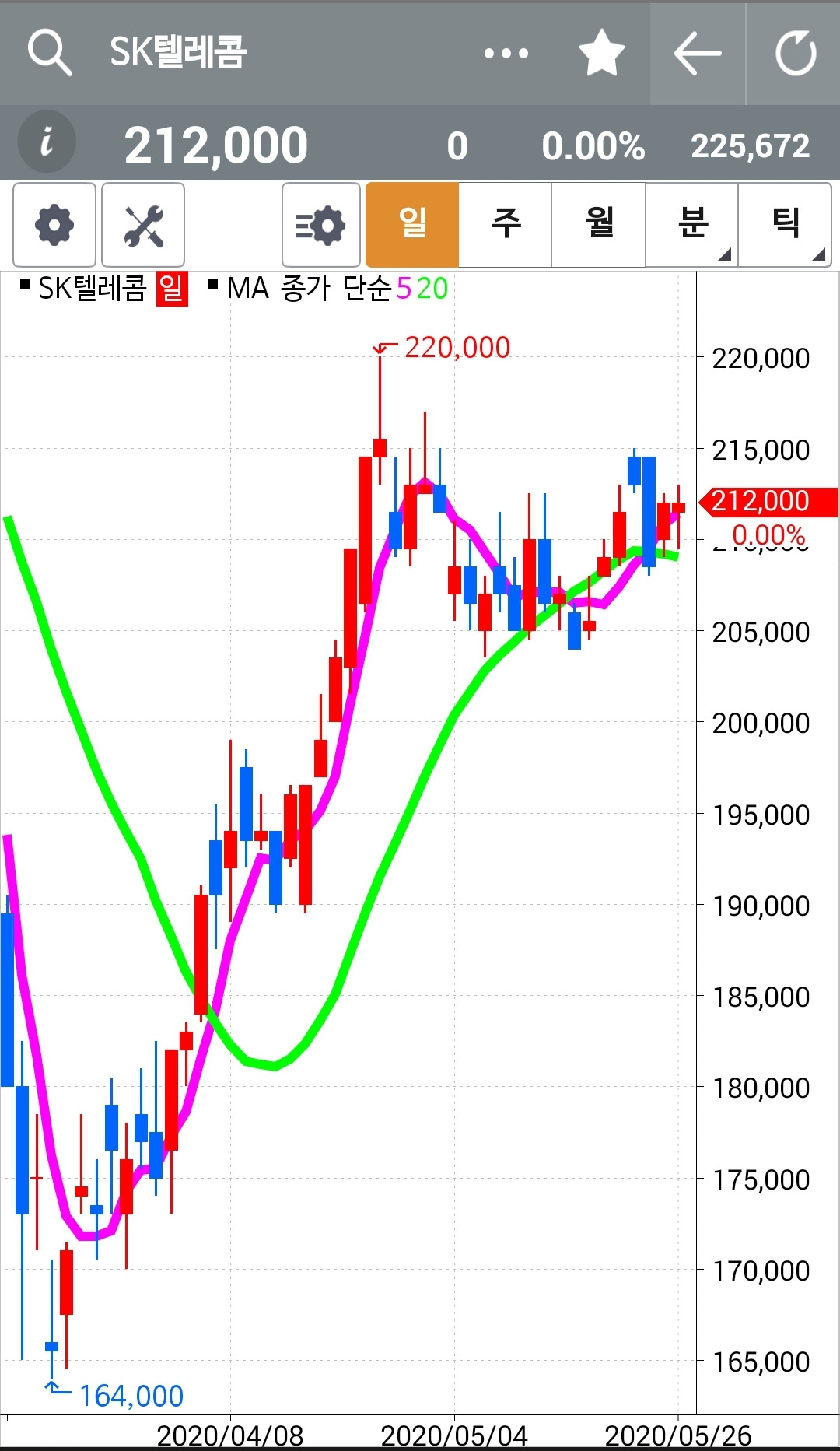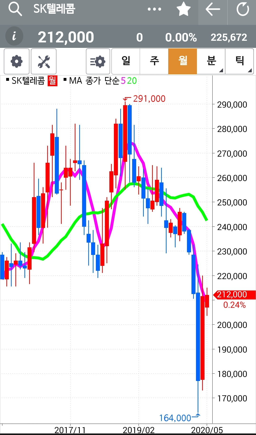 SK텔레콤을 대충 50만 원으로 계산하여 사 넣었다. 어떻게 뚫고 올라왔는가 볼까?