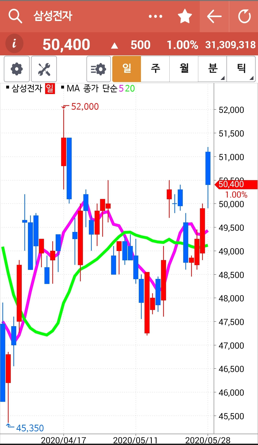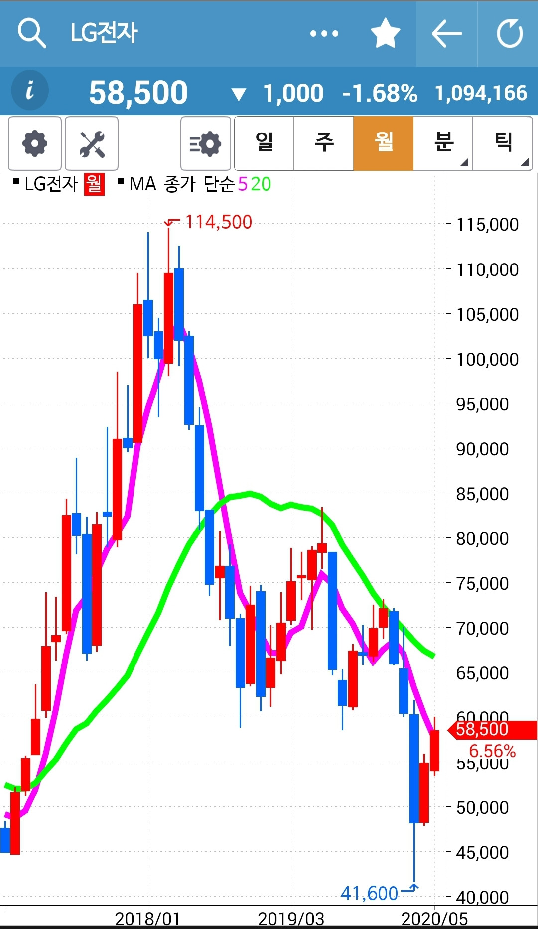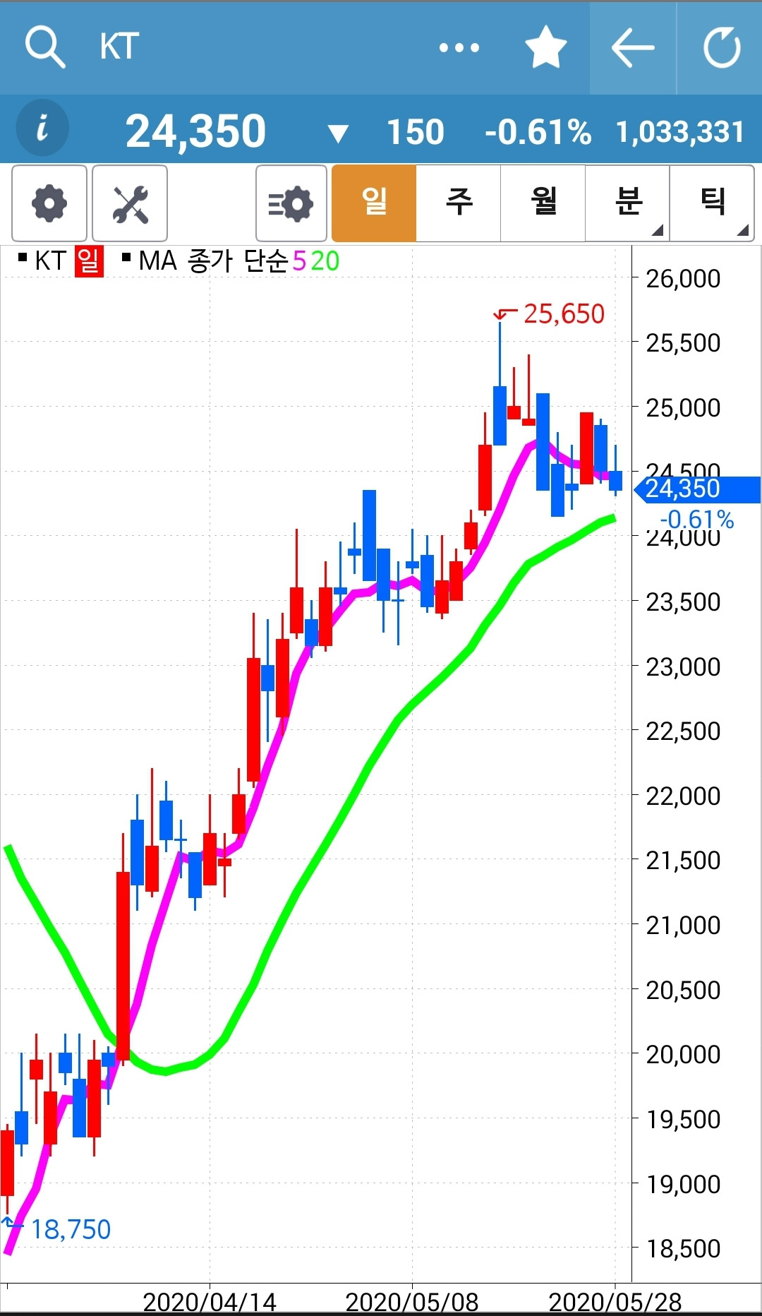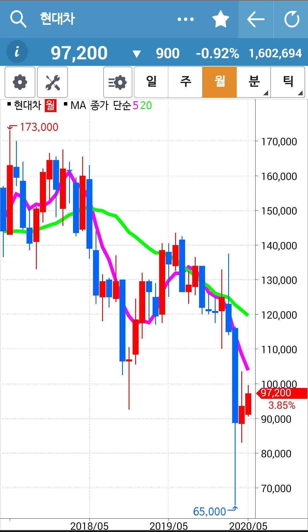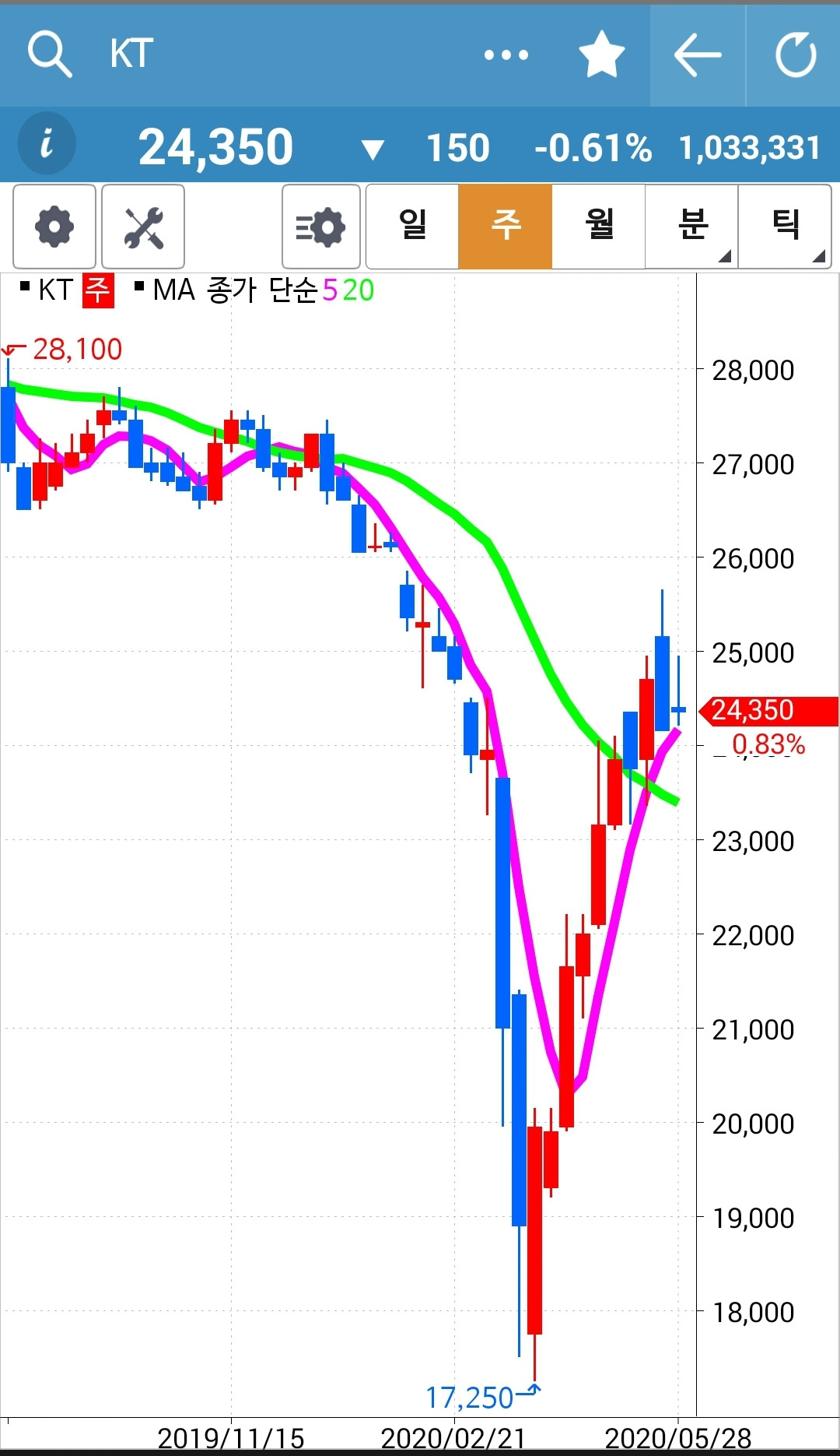 20주선과 5개월선에 부딪쳐서 조정 중이라고 생각하자. 5일선이 20일선 위에 있는데 무어 걱정! 매수유지! 하! 그런데 20주면 바로바로 5개월 아닌가? 푸하하하 그러니까 20주선에 닿으면 5개월 선에 닿는 거지. 바보. 푸하하하