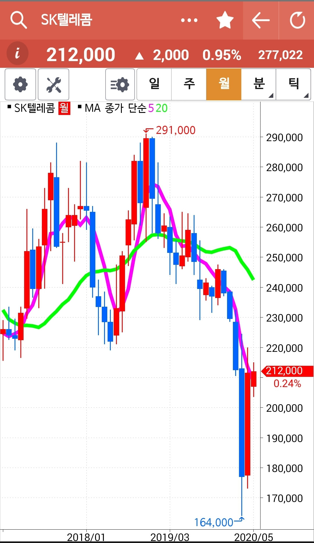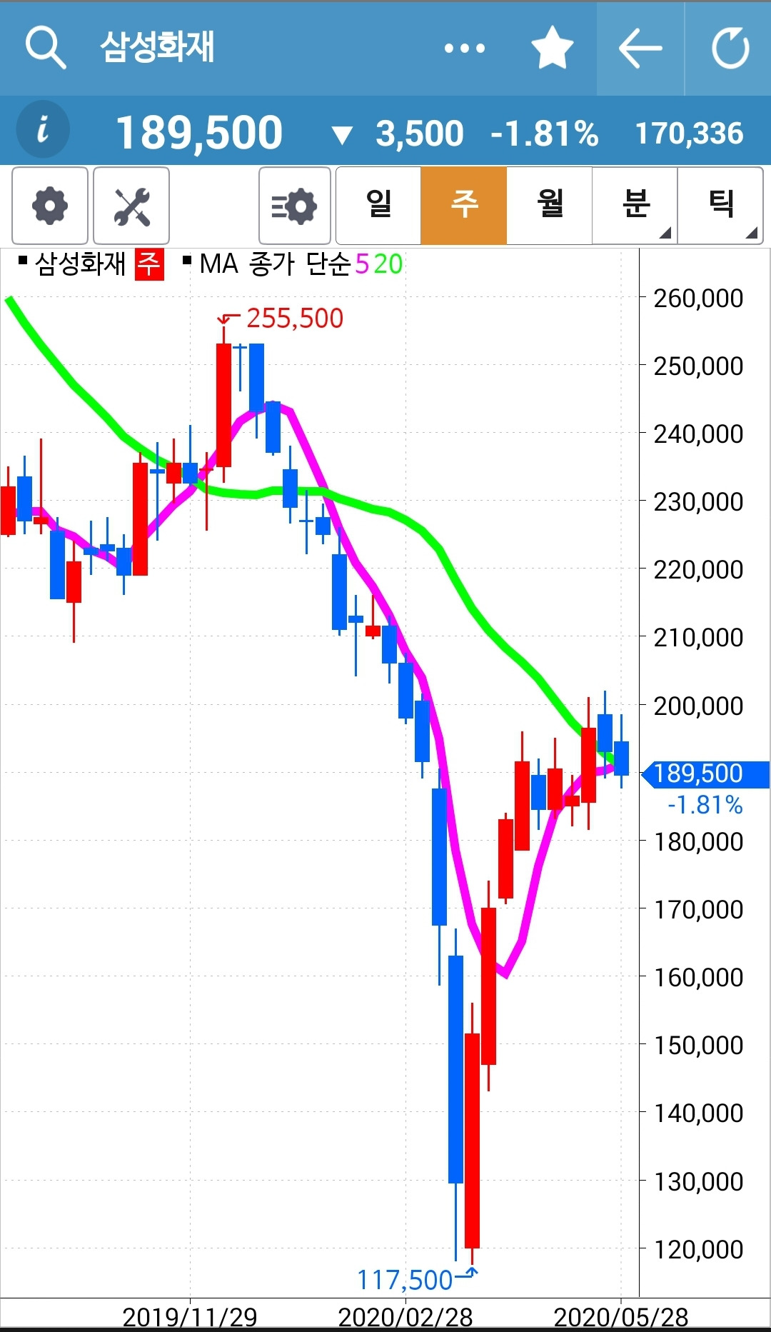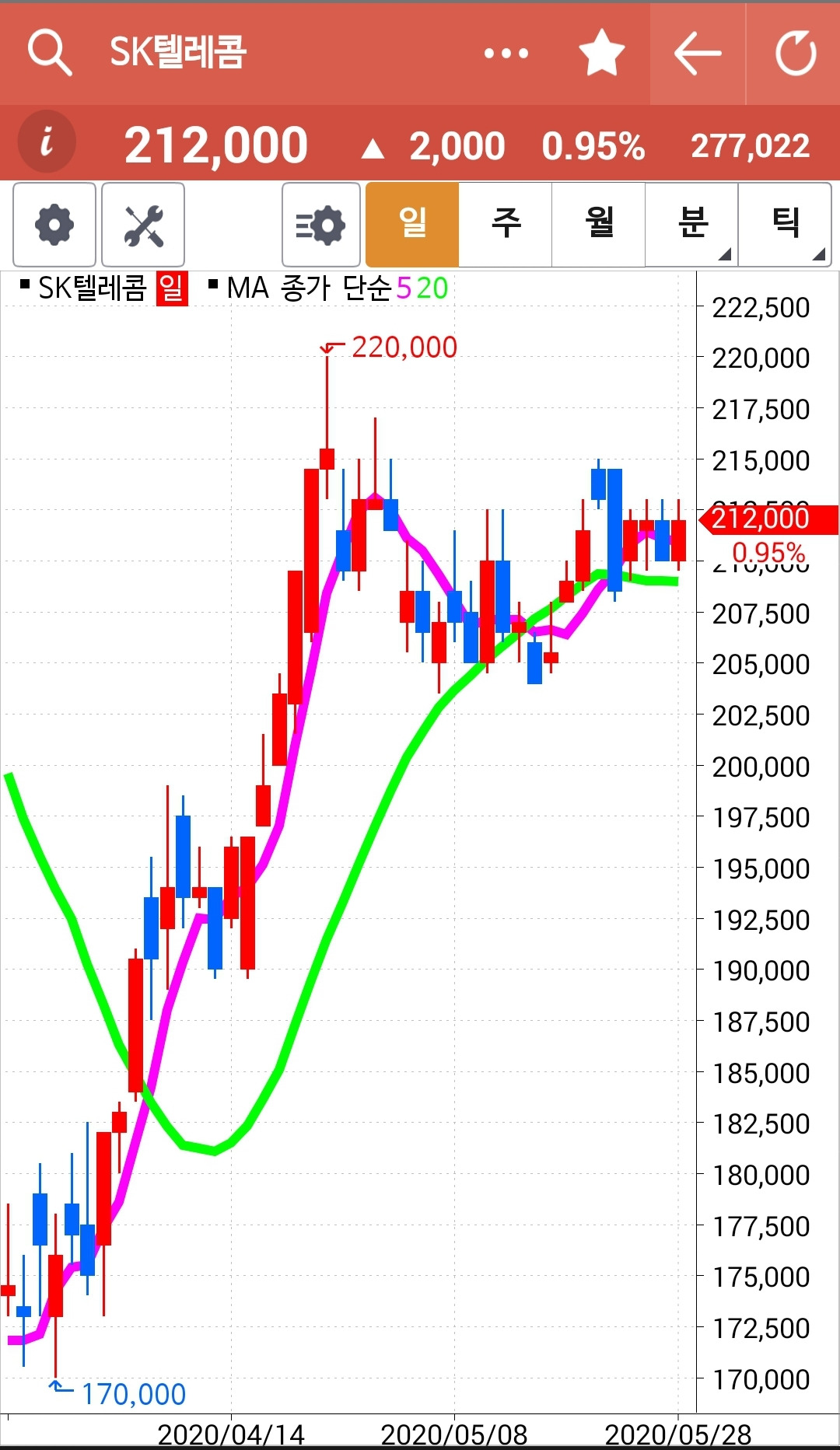 하. 언제까지 이렇게 횡보하려나. 20주선 5개월선 부닥쳐서 숨 고른다 생각하자. 5일선이 내려오기만 해봐. 그 즉시 뎅강 탈락이여.