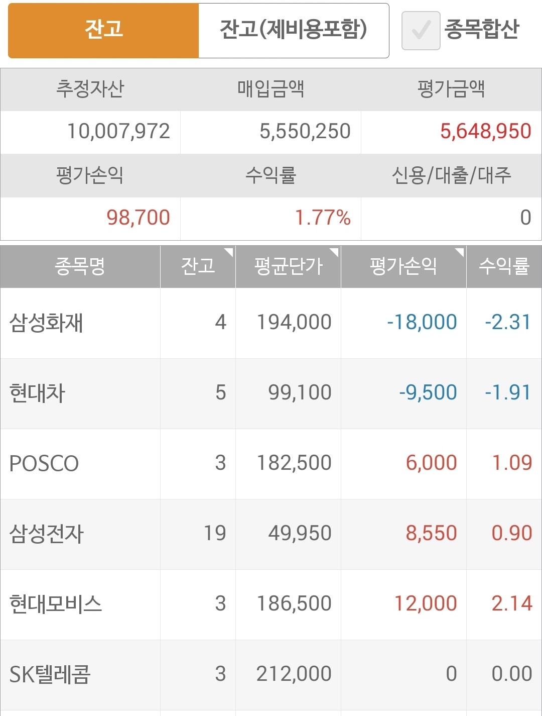 천만원이 나의 투자금액. 에고 코려라. 겨우 7천원의 수익이다. 어제보다 낮아졌다. 그러나 이런 수익내고 안내고는 중요하지 않다. 나의 원칙을 잘 지켜내느냐가 중요하다. 그래 손실을 보아도 좋아. 내가 정한 원칙을 지켜내는가? 그것으로 나의 잘하고 못함을 평가하리라.