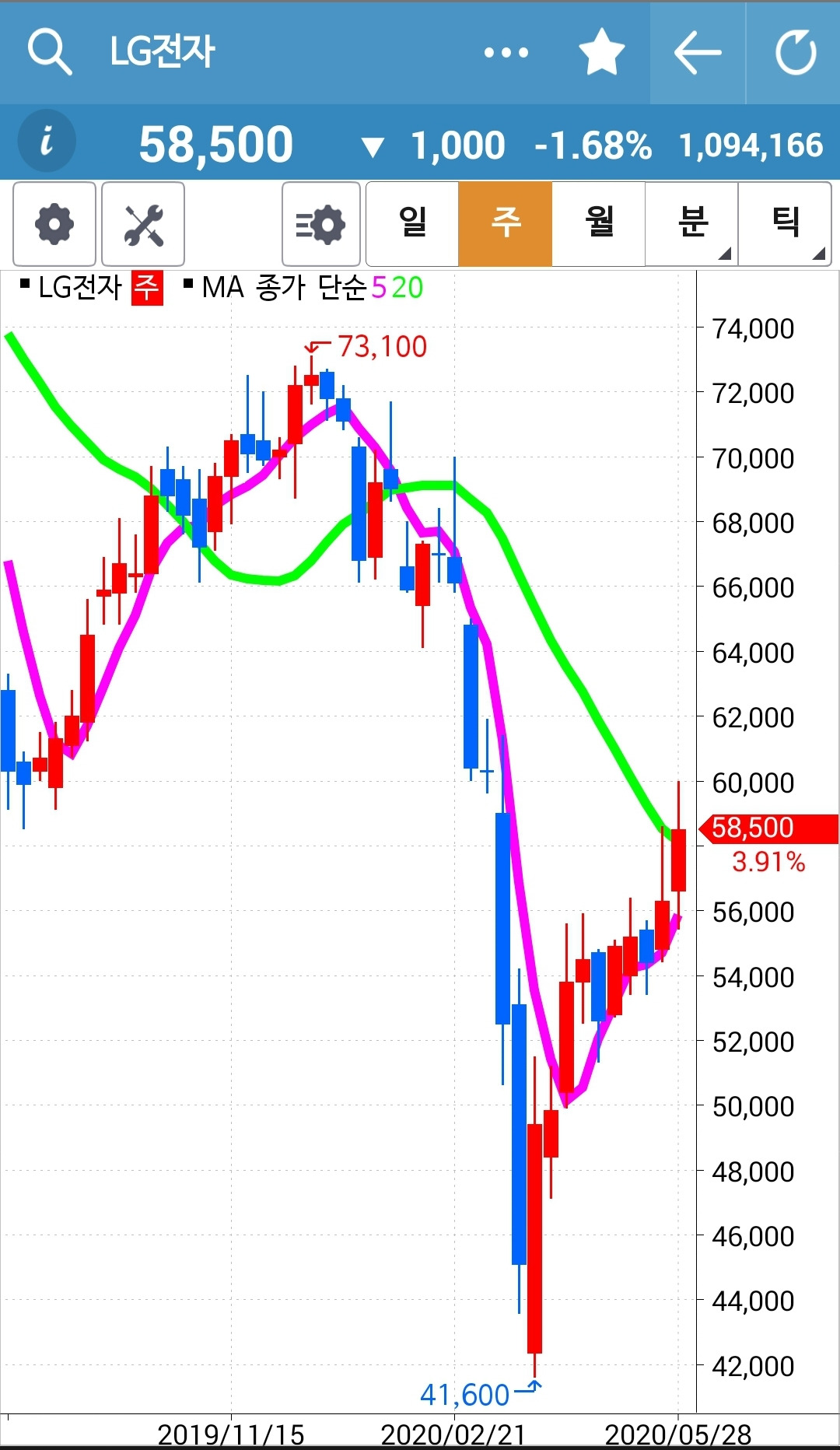 20주선 5개월선 가볍게 위로 돌파. 걱정할 것 없음. 아직 5일선이 위에 있으니까 매수유지!